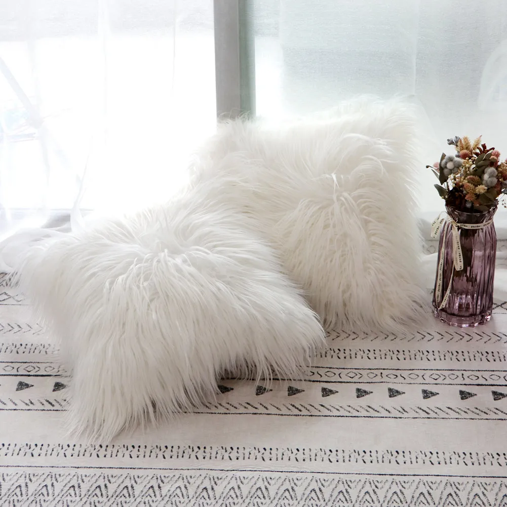 OurWarm Рождественский чехол для подушки 45x45 см, белая плюшевая мягкая подушка из искусственного меха, декоративная подушка, Новогодний Декор для дома