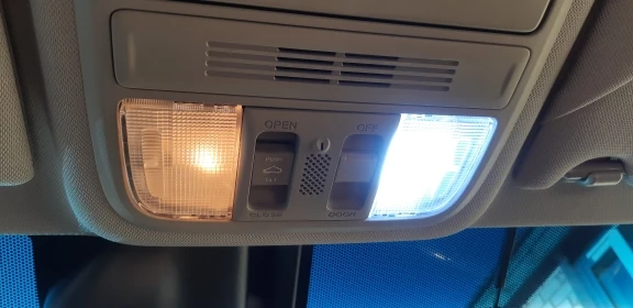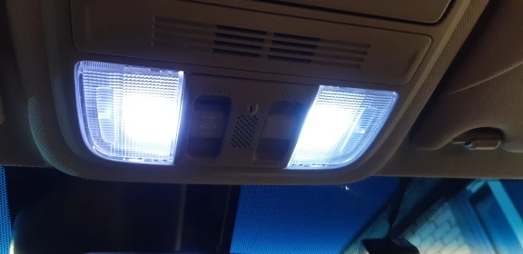 светит очень ярко. супруга даже сетовала, что слишком. работает около месяца. несмотря на то что установлена в передней части салона, яркости хватает осветить весь салон. при продолжительной эксплуатации нагревается, но не критично. буду заказывать еще.