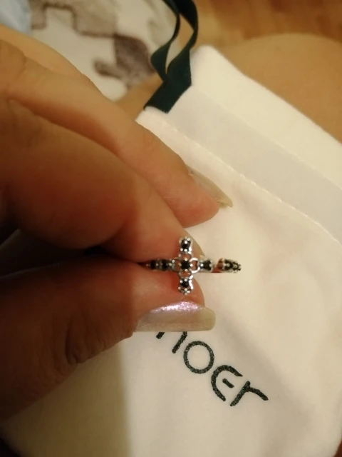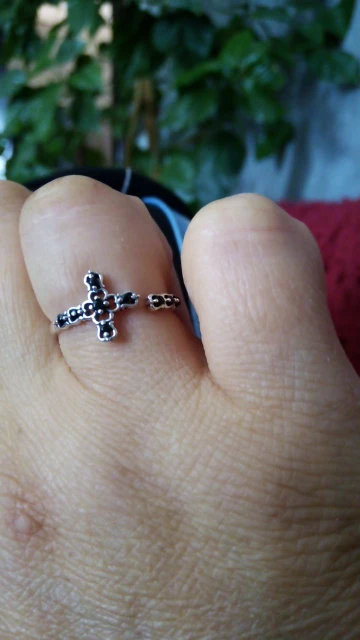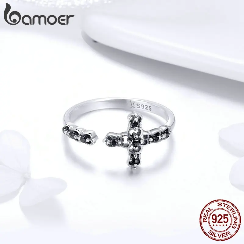 Классическое кольцо BAMOER из стерлингового серебра 925 пробы с крестом, регулируемое кольцо для женщин, черное кольцо из стерлингового серебра с фианитом SCR447