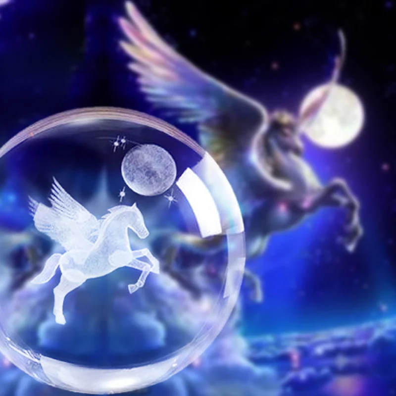 80 мм 3D лазерная гравировка миниатюрный Пегас хрустальный шар Хрустальная сфера для рукоделия стеклянное украшение для дома подарок на день рождения