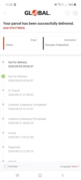 товар так и не пришел, деньги не вернули (решили спор в пользу продавца), по треку продавца я типа его получила а по факту нет и на сайте отслеживания GLOBAL эта посылка уже отправлена ему обратно. НЕ ЗАКАЗЫВАЙТЕ У ЭТОГО ПРОДАВЦА ОСТАНЕТЕСЬ И БЕЗ ТОВАРА И БЕЗ ДЕНЕГ!!!