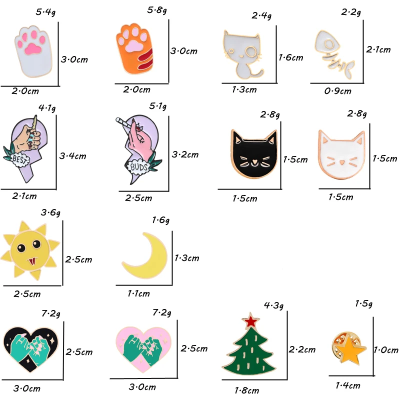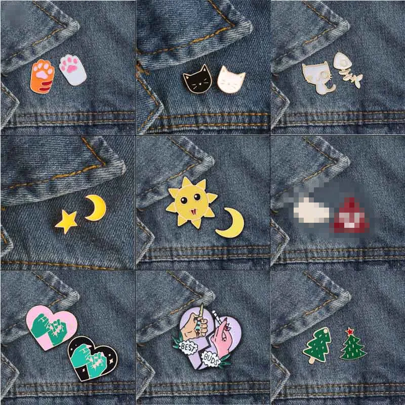 2 шт./компл., модная Милая брошь в 9 стилях, булавка с изображением Луны, солнца, сердца, рождественской елки, кошки, когтя, значок, рубашка, юбка, отворот, аксессуары для пары, игровой подарок для детей, оптовая продажа
