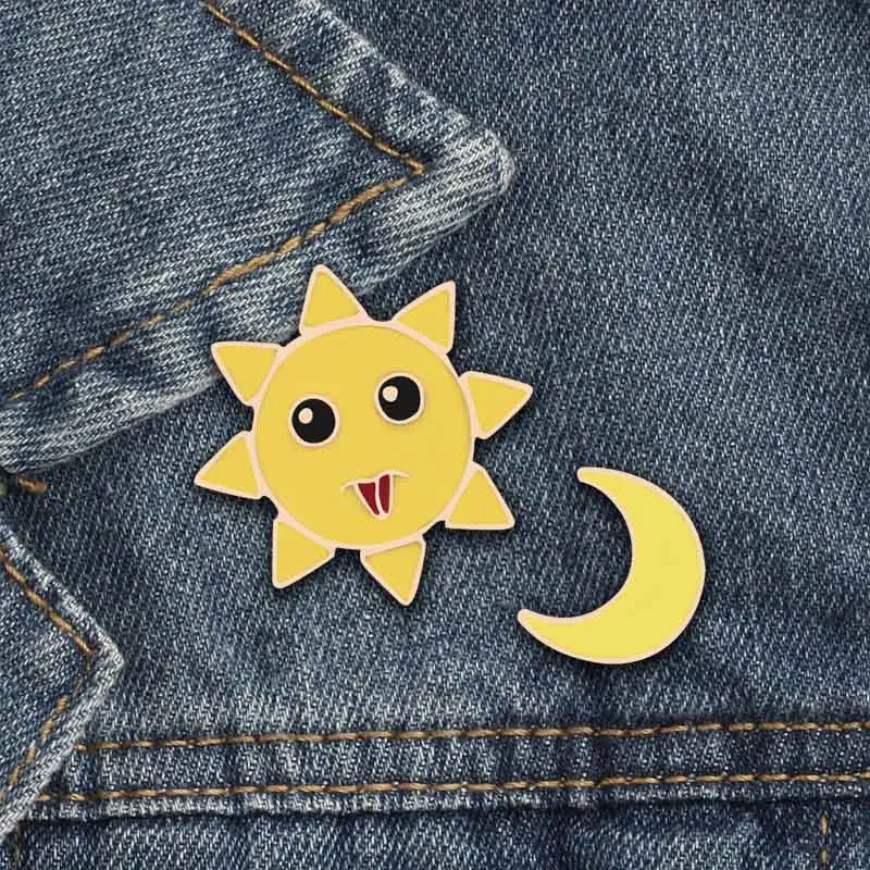 Брошь на булавке с изображением Луны, солнца, фекалий, сердца, новогодней елки, кота, когтя, значка для рубашки, юбки, отворота, аксессуары для пар, 9 стилей