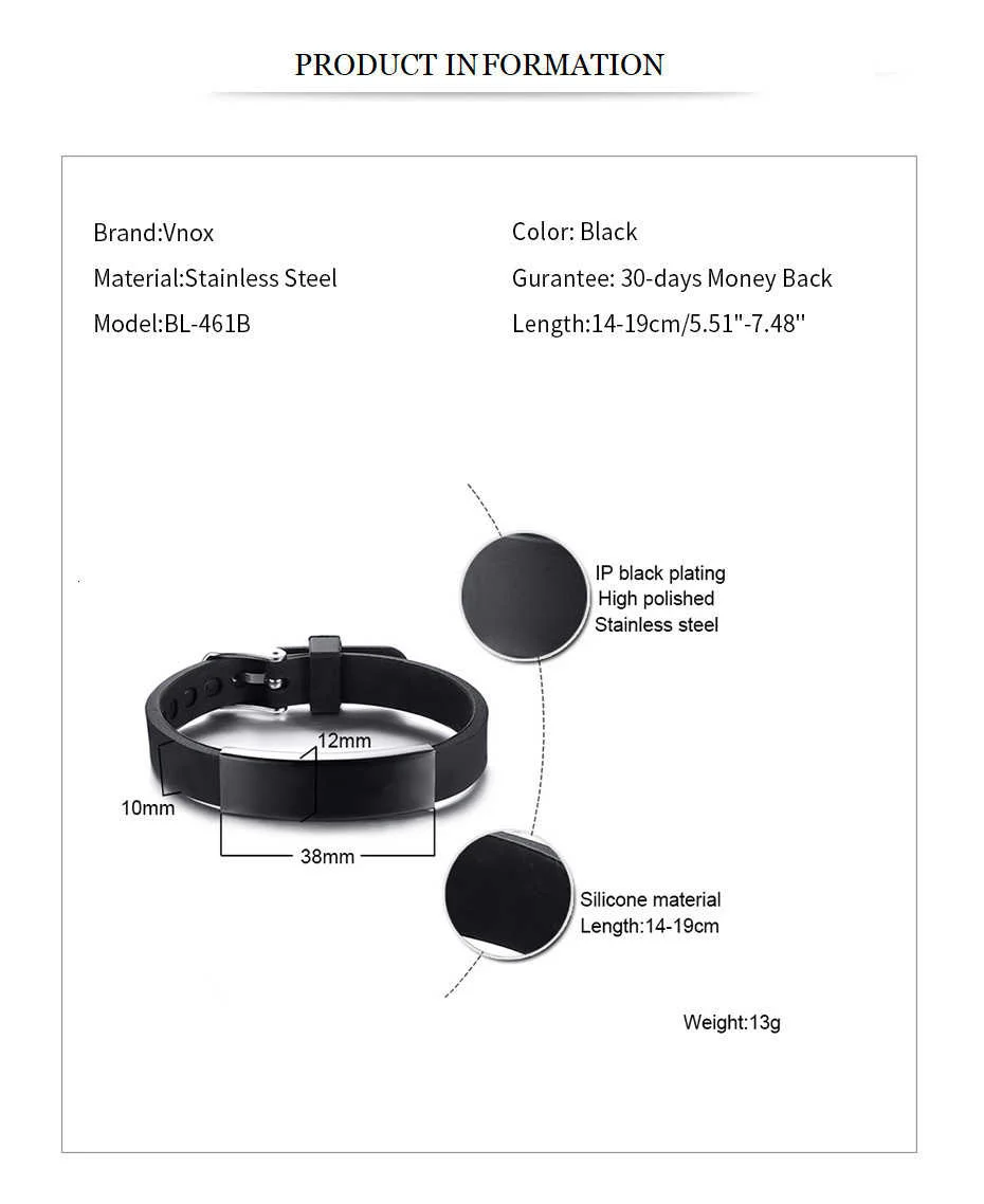 Разноцветные силиконовые браслеты Vnox для мальчиков и девочек