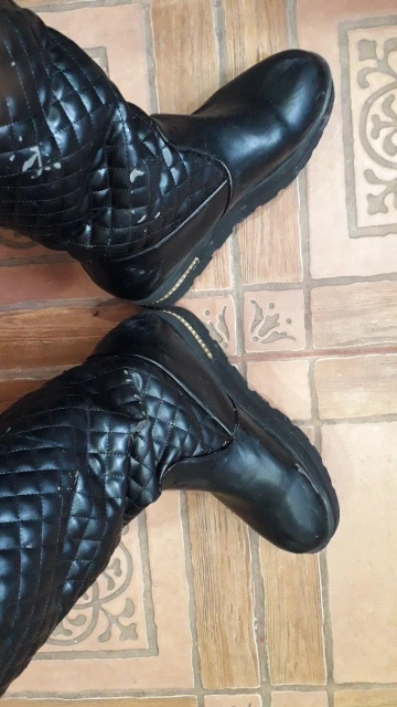 сапожки хорошие, длинные в икре мне немного свободно, но в целом хорошо) прошли проверку на морозы -20, -30 в носочках средней толщины. потом минут через 30-40 в -25 потихонечку начинают подмерзать пальцы ног, но полностью нога не мерзнет. отличные сапожки, хорошее качество. каблук твердый прочный, без проблем можно спускаться вниз по скользкой горке делая упор на пятку(каблук) как-бы вдавливая в снег. ношу 3 месяц немного потерлось за счет трения там где голень(на фото видно где), а в остальных местах не сшоркалось, но на мне обувь горит) фото сделанно на данный момент, т.е. уже в процессе носки. пришли очень быстро буквально за 1.5 недели у меня размер 38,5, сапоги немного великоваты, можно было взять и на размер поменьше. ну и еще в голени как-то большевато, но нога залазит и слазит хорошо) но как-то массивно смотрится, как мне кажется