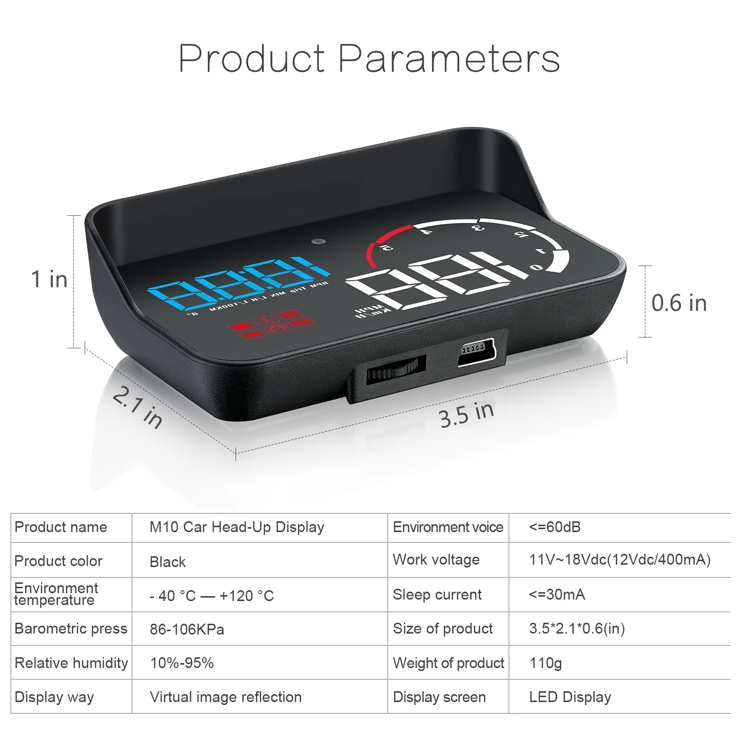 OBD2 HUD: подключается к автомобилю с помощью кабеля OBD, подходит для большинства carsafter 2003 года в США/Европе/Австралии и после 2007 года в Азии.