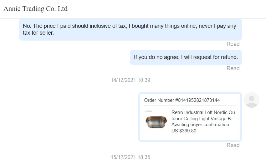 1. Медленно/без ответа от продавца, 2. Никаких отзывов от Aliexpress, несмотря на сообщение и обещанное решение проблемы с налогом. 3. Задержка отправки с 22 декабря 2021 г. Задержка до 3 января 2022 г. 4. Неверная информация, предоставленная продавцом
