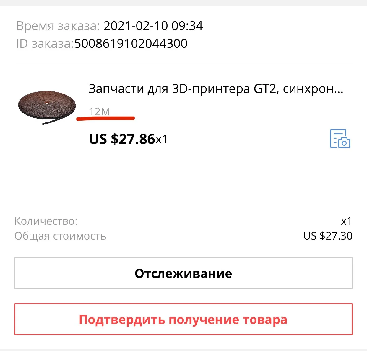 I have buy 12 meters of the belt, but got only 2 meters in a package. The seller doesn’t answered on any my questions. Thanks to aliexpress support for the decision about refund the money in a dispute. Still have not any answers from a seller :(
