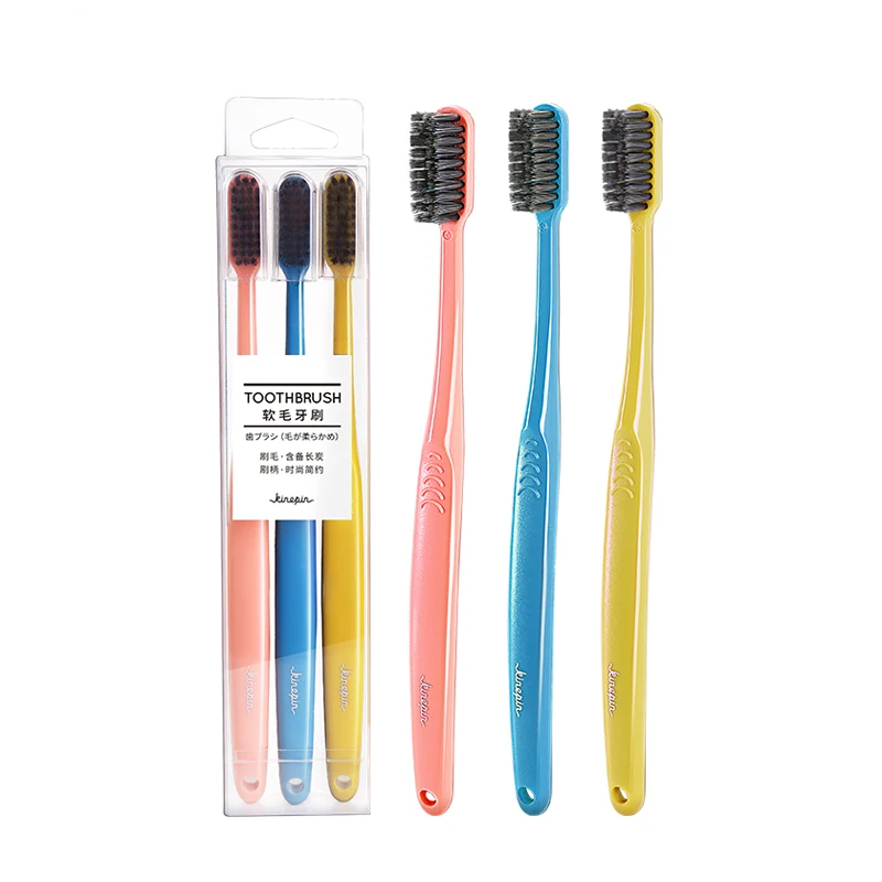 Зубные щетки KINEPIN, 3 шт., мягкие, угольные, зубная щетка со щетиной, для взрослых, портативные, для путешествий, набор зубных щеток с крышкой для головы