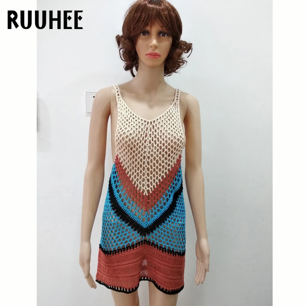RUUHEE, 2021, вязаная Пляжная накидка, бикини, пляжная одежда, накидка, сексуальное прозрачное пляжное платье без рукавов