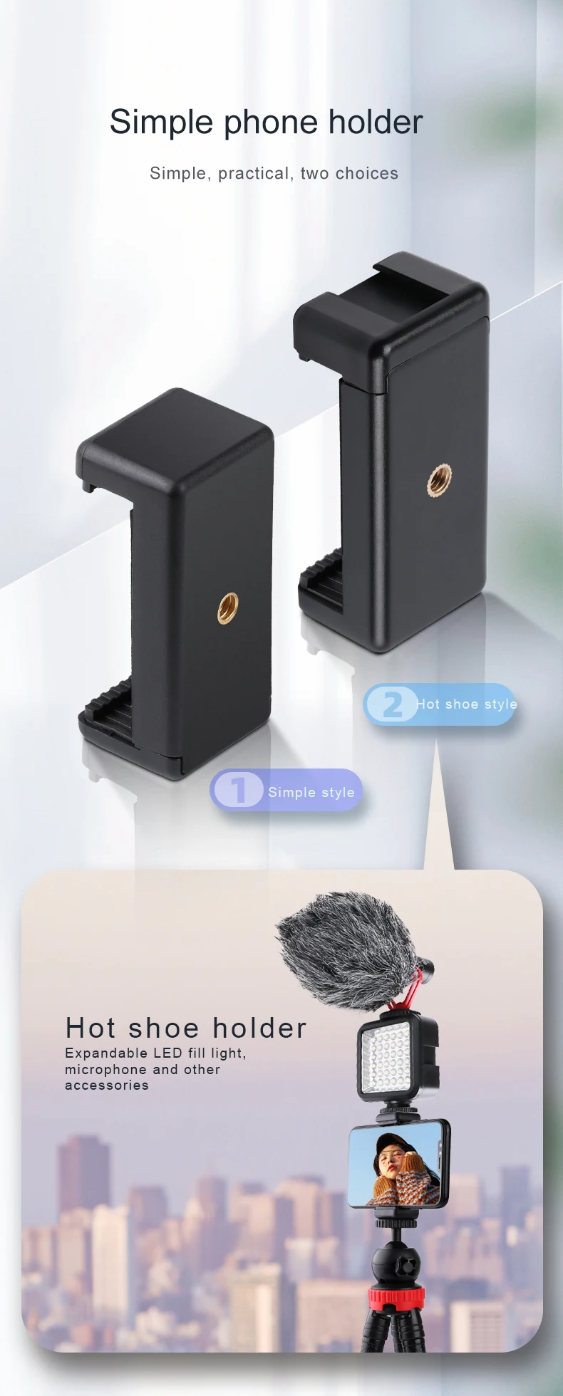 Регулируемая селфи-палка Gopro, зажим для телефона, аксессуары для Go Pro, крепление в сборе, зажим 51-84 мм, держатель для iPhone 6, 7, 8, 9, 10, samsung
