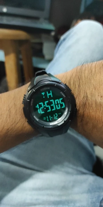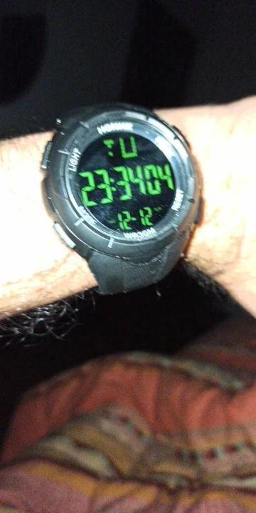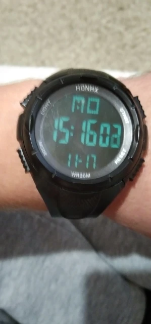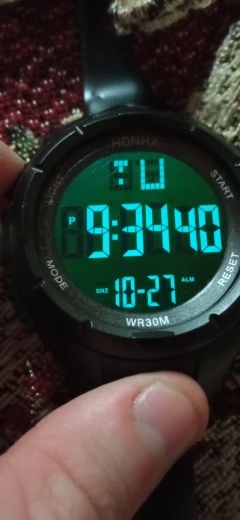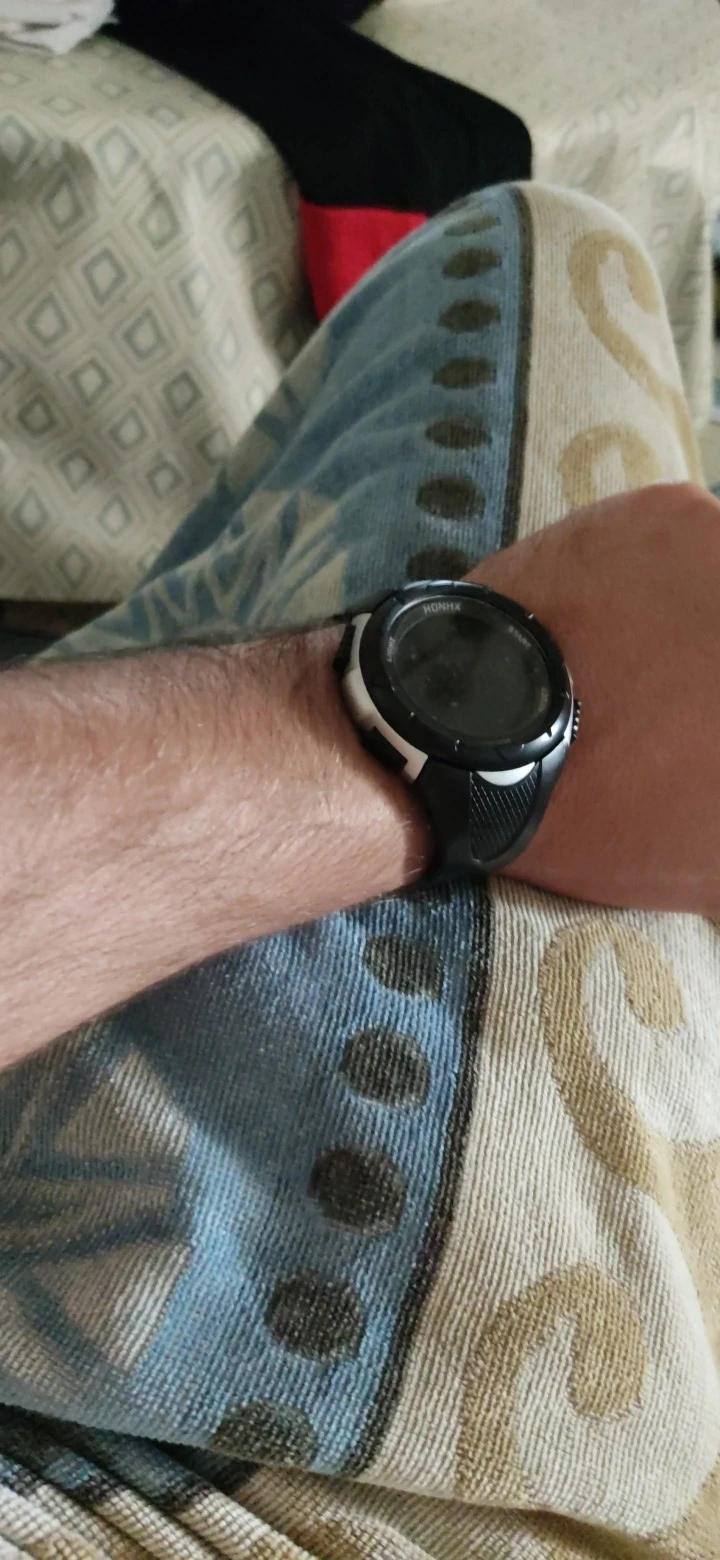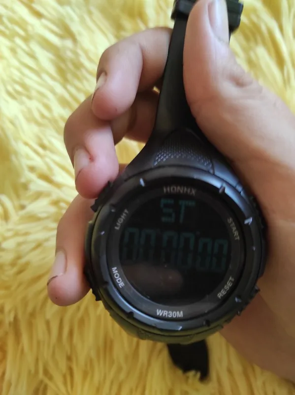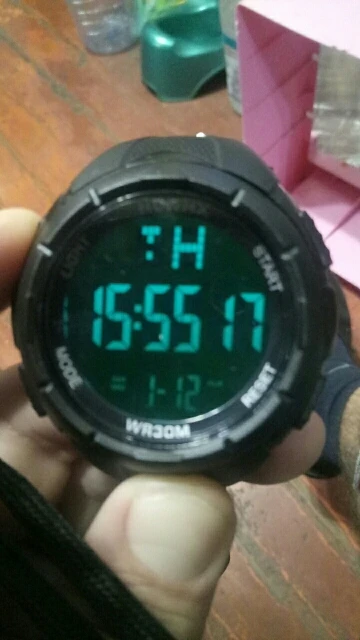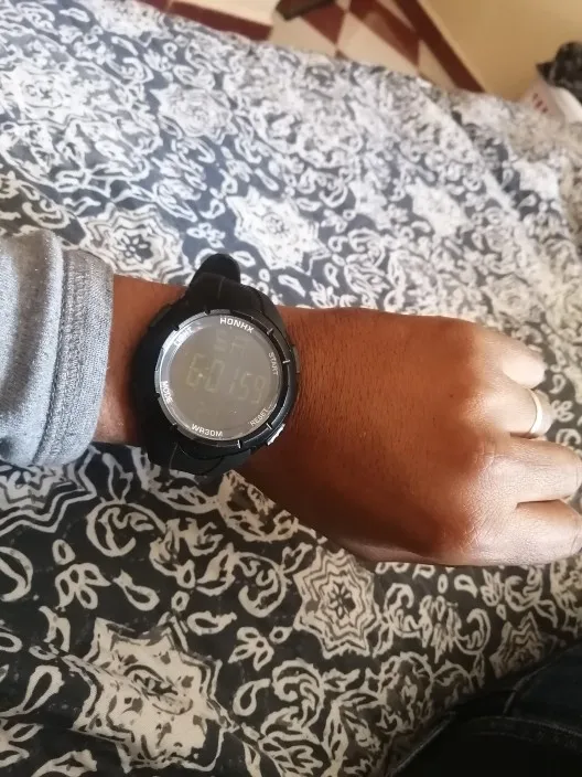 Часы работают. Без подсветки цифры видно плохо. Есть ещё небольшой баг с пикселями из-за чего буква "Т" выглядит неправильно. Часы довольно-таки большие , на большую руку и для моей подростковой руки они великоваты, но есть ещё две дырки, так что их можно затянуть и потуже. Шел дней 20, толком не считал.