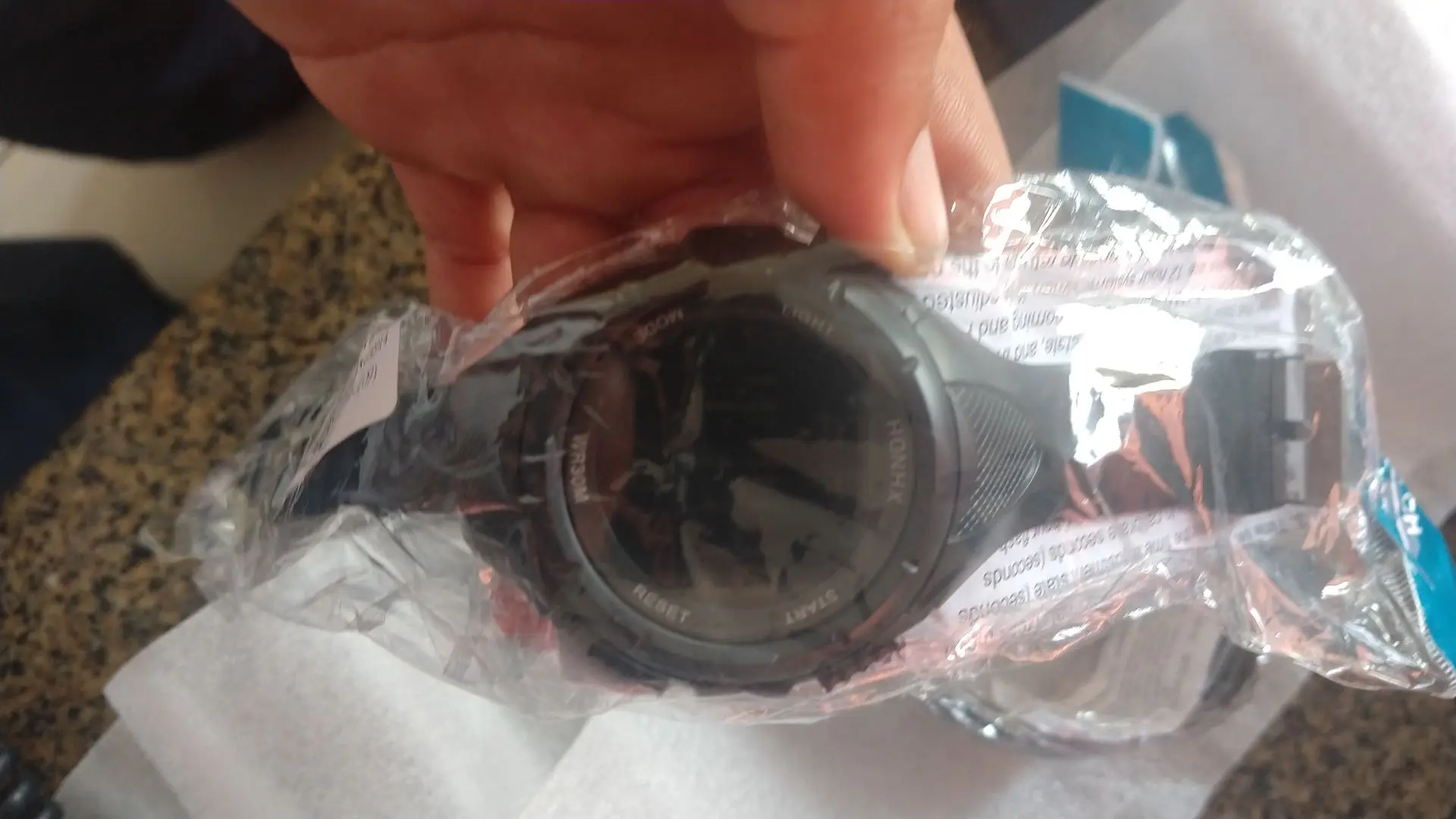 Часы были заказаны 4 сентября, пришли на почту в Башкирию 21 октября, трек-номер отслеживался. Часы заказывал не для себя, вот дословный отзыв человека: "Стекло вращается в корпусе.Плохо видно экран часов.Не заметны значки alm иCH сигналов.Жесткий браслет.Слабая подсветка" К отзыву прикладываю фото. До этого заказывал ему немного другие часы, они ему понравились гораздо больше.