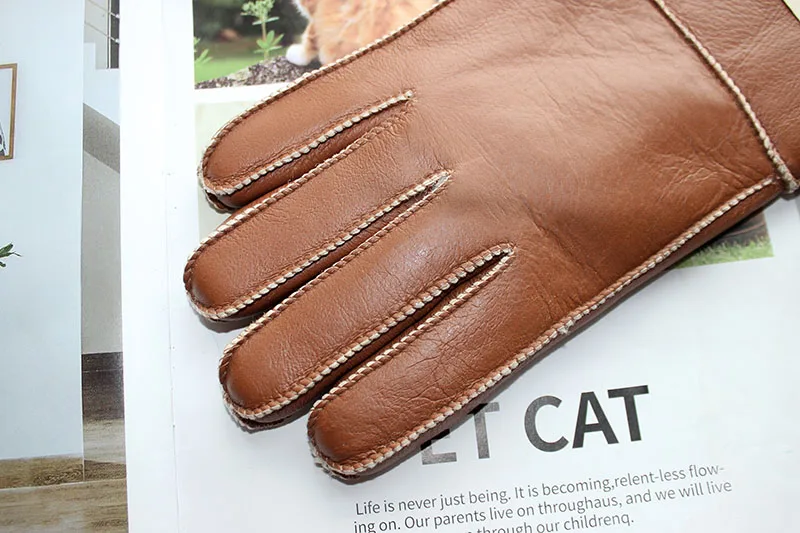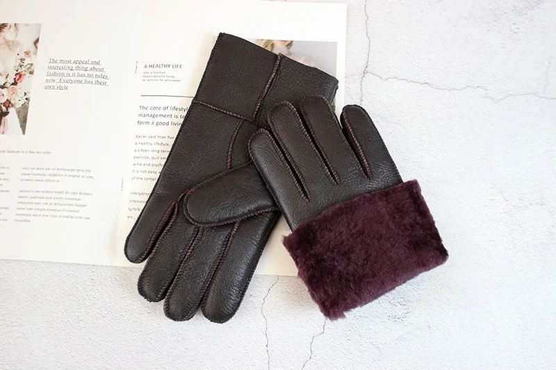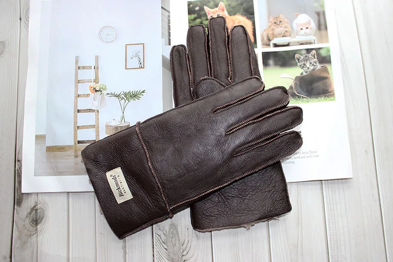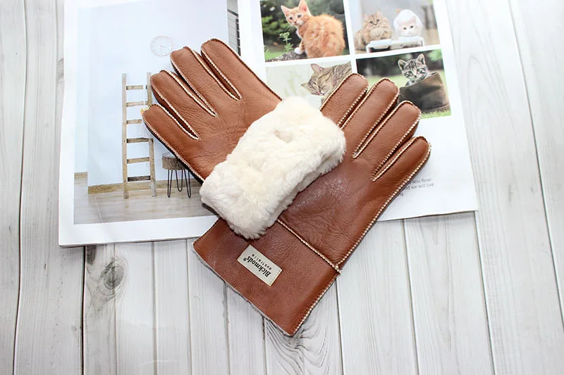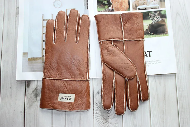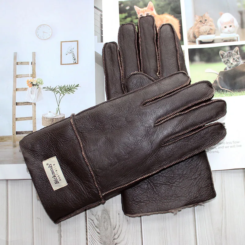 Зимние теплые меховые перчатки из овчины, мужские утепленные ветрозащитные и непромокаемые кожаные перчатки из шерсти для езды на мотоцикле
