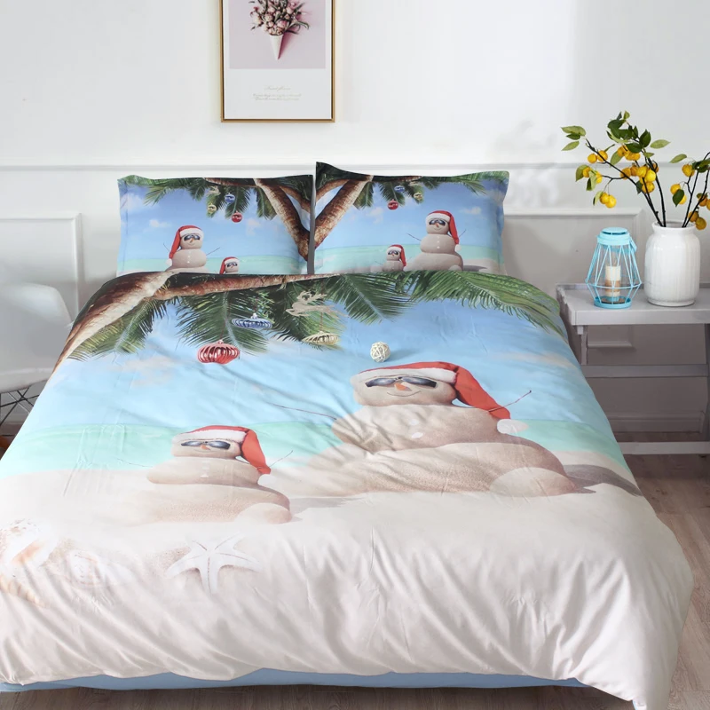 3 шт. в комплекте песок Снеговик на пляже 3d Рождественский Комплект постельного белья