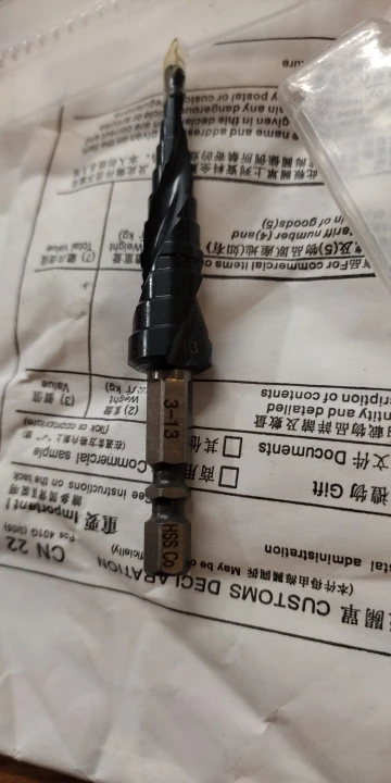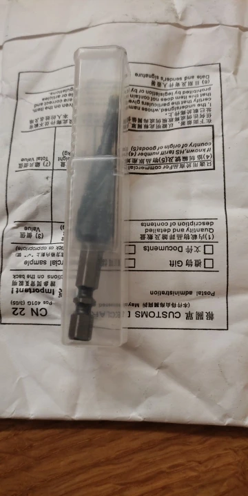 Отличное ступенчатое сверло. Заказ получил через 2 недели через Владивосток до Сахалина, трек отслеживался.Упаковано в отдельный пластмассовый бокс. Продавцу спасибо за оперативность.