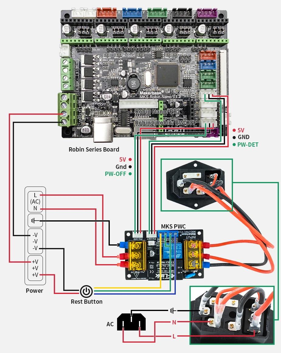 MKS PWC может обеспечить постоянное воспроизведение питания, автоматическое выключение после завершения печати, программное обеспечение контролирует выключение питания, контролирует состояние питания и другие функции. Это может помочь добиться интерактивной печати, а также помочь в таких случаях, как неожиданное отключение питания, или вам придется уйти во время печати и другие подобные проблемы, считается одной из наиболее полезных функций в 3D принтерах.