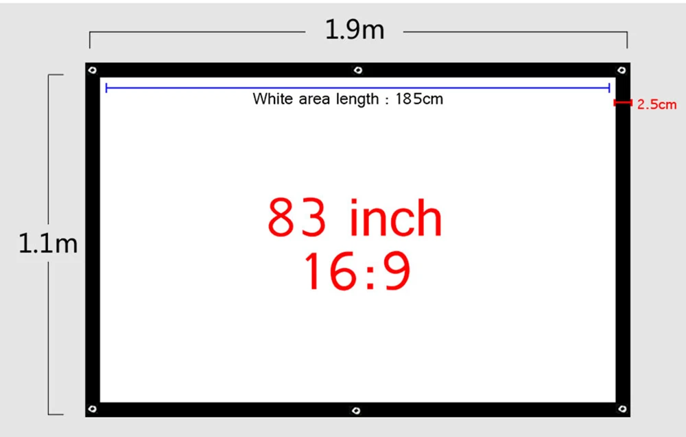 1. Подходит для портативной наружной мягкой проекционной занавески, легко носить с собой.2. Легко чистится, влагостойкий, устойчивый к плесени, без запаха, не выцветает, не желтеет, не деформируется, даже не использовался долгое время.3. Эффективно предотвращает рассеивание светильник и широкий угол обзора.Размер: 83 дюйма (210 см)Масштаб: 16:9Примечание:1. Из-за различий в мониторах и световых эффектах фактический цвет изделия может немного отличаться от цвета, показанного на фотографиях.2. Возможны отклонения в 1-3 см из-за измерений вручную.