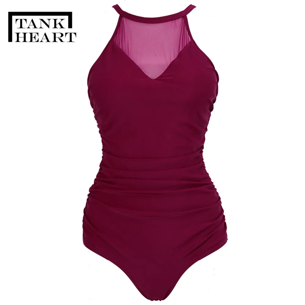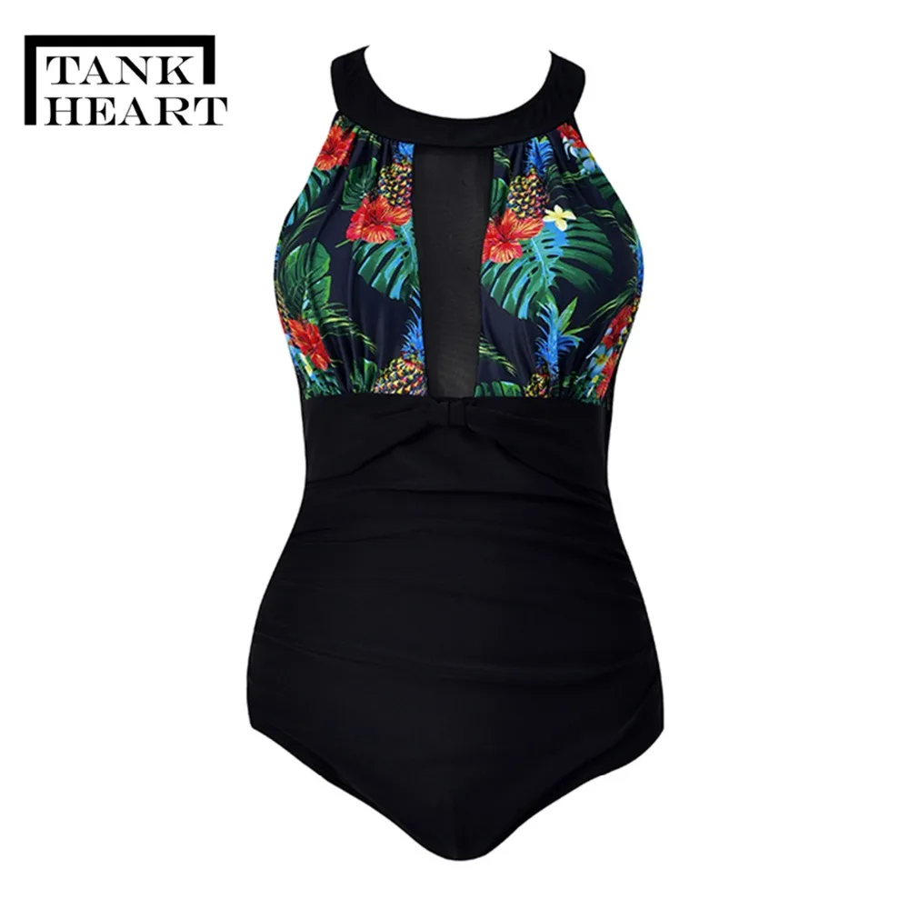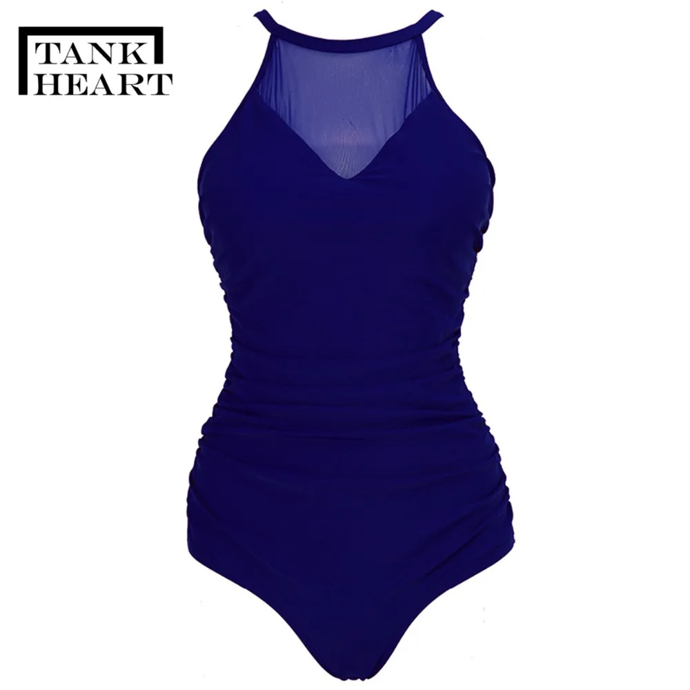Танк сердце сексуальные ретро цельные костюмы Монокини размера плюс купальники женские цельные купальный костюм Badpak трикини купальный костюм женский 4XL