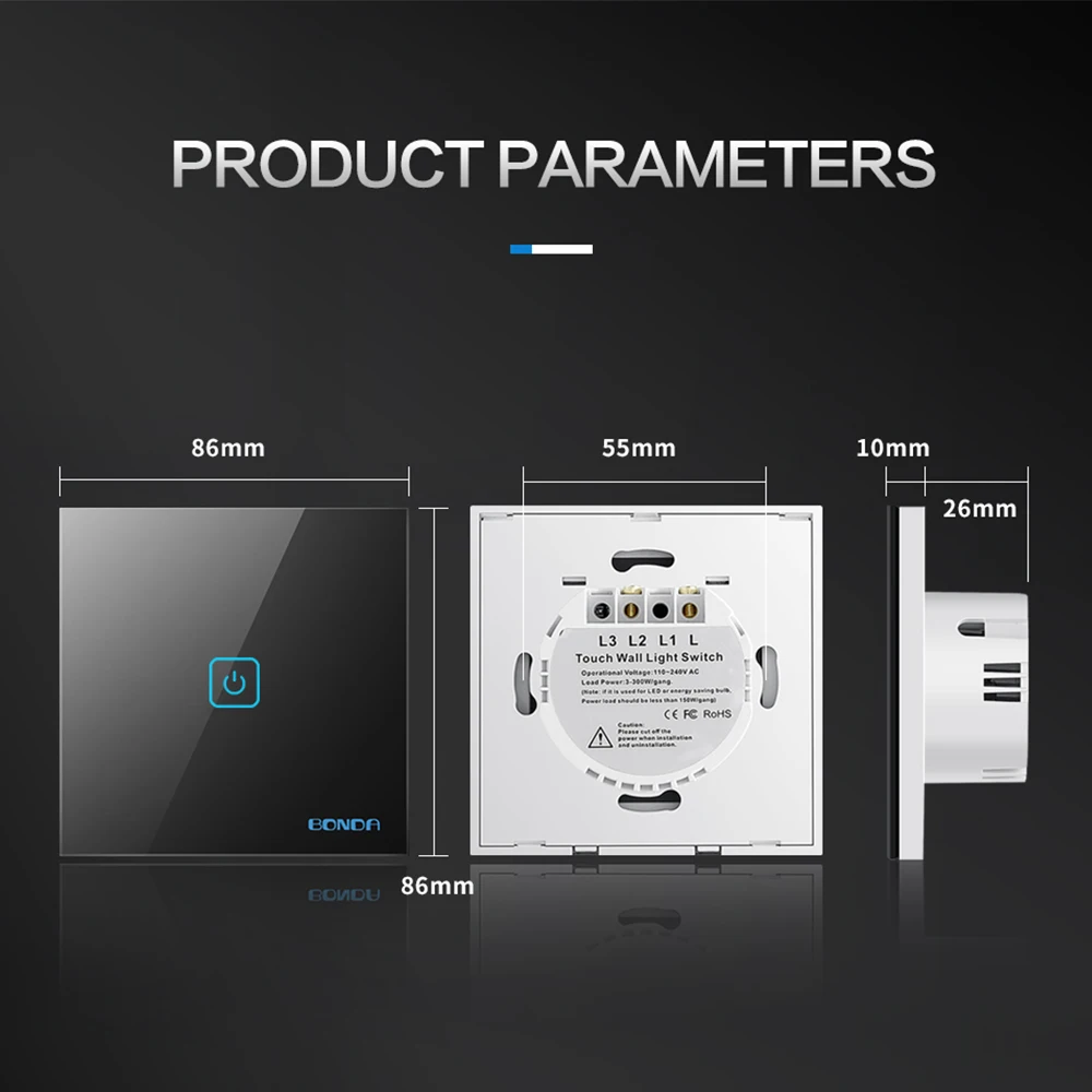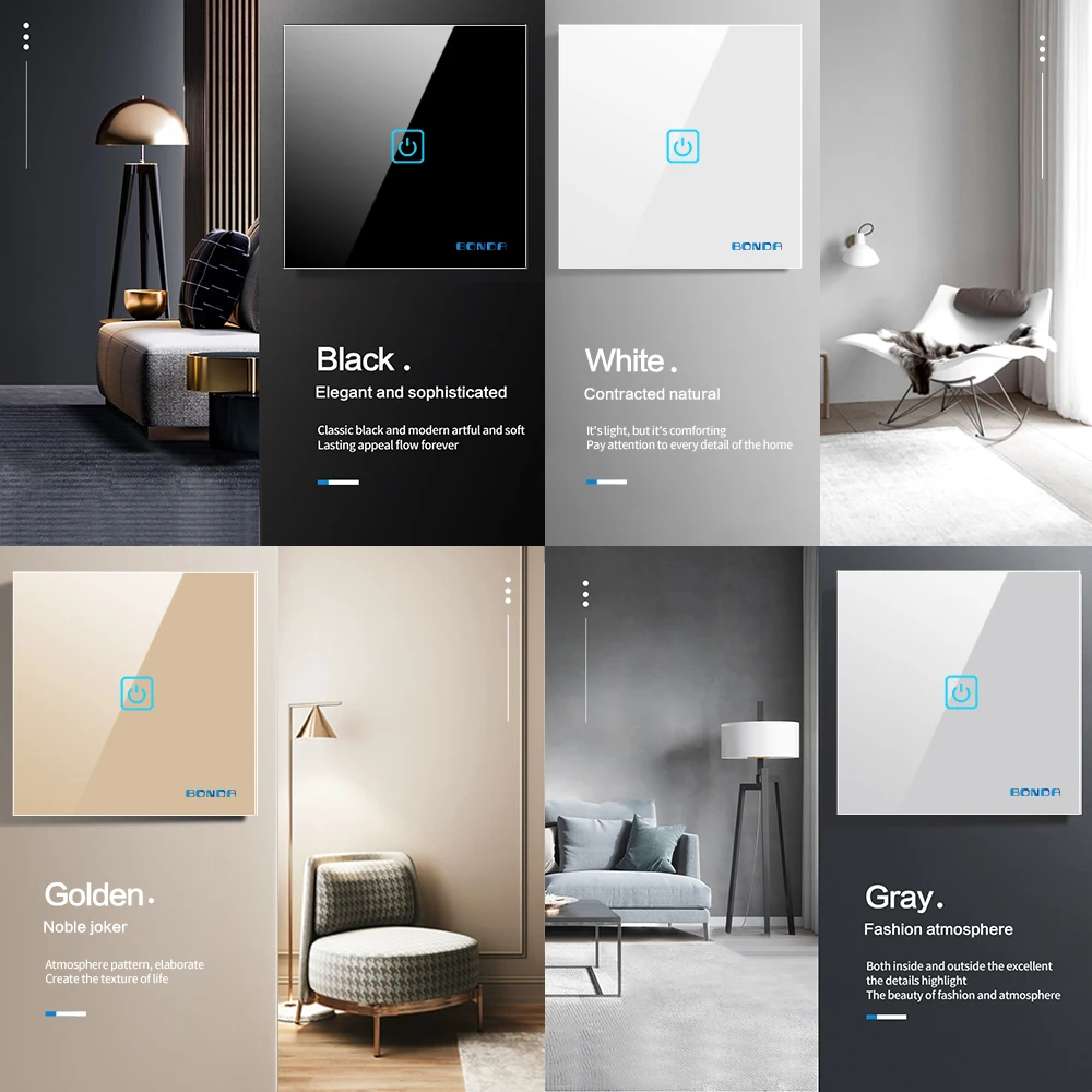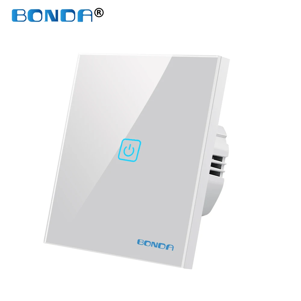 Сенсорный переключатель BONDA, стандарт ЕСВеликобритании, панель из белого хрусталя, доступны 4 цвета, 110-220 В, настенный сенсорный переключатель света