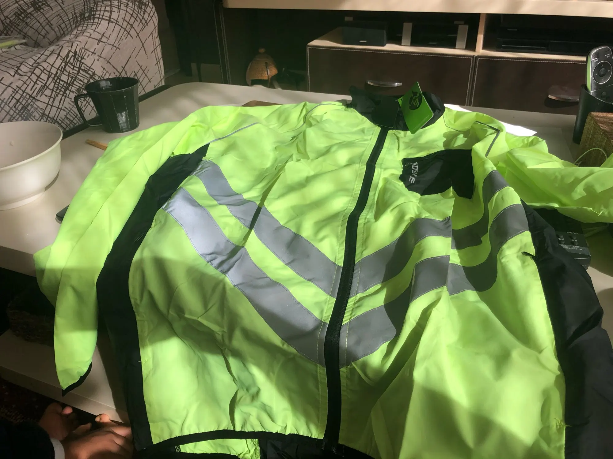 Светящаяся желтая Светоотражающая легкая куртка. Погода в течение вторника + 5 и дождь. Будет хорошим испытанием.