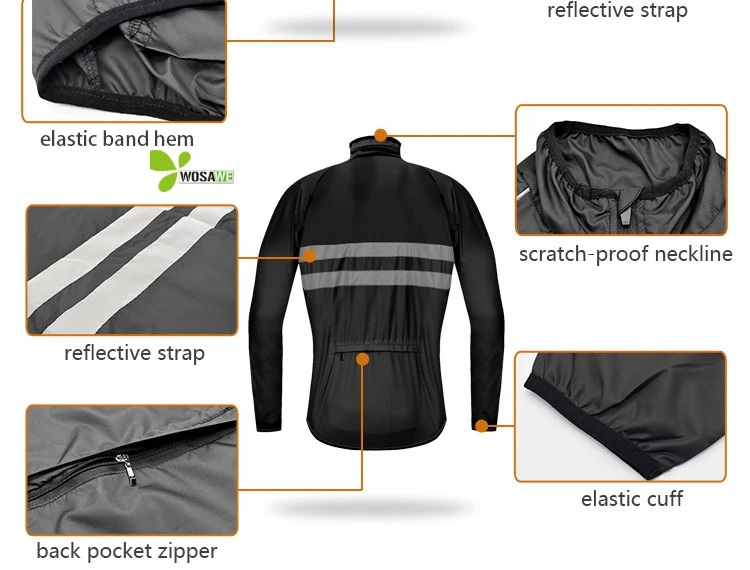 Он защищает от ветра, но обеспечивает достаточную воздухопроницаемость, чтобы хорошо проветривать и сушить; Он помогает держать брызги или светильник под дождем; светоотражающие полосы шириной 4 см обеспечивают безопасную езду на велосипеде и пробежку ночью.