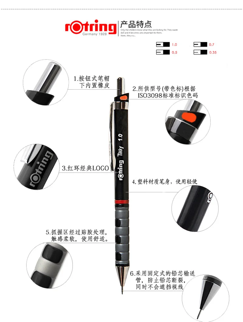Автоматический карандаш Rotring Tikky, механический карандаш 1,0 мм0,7 мм 0,5 мм0,35 мм, 1 шт.