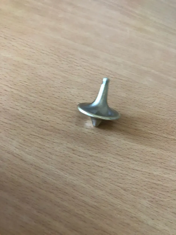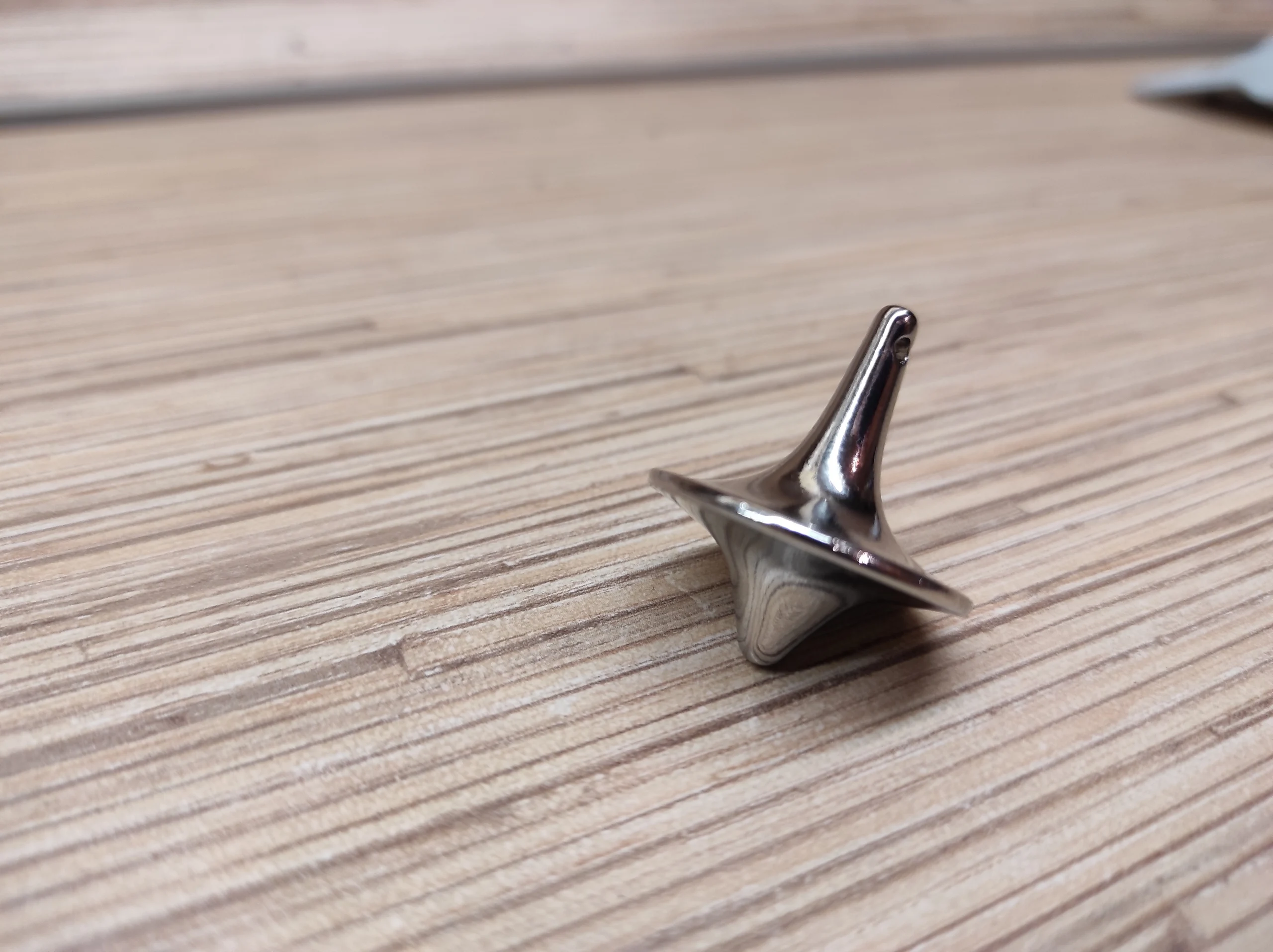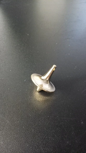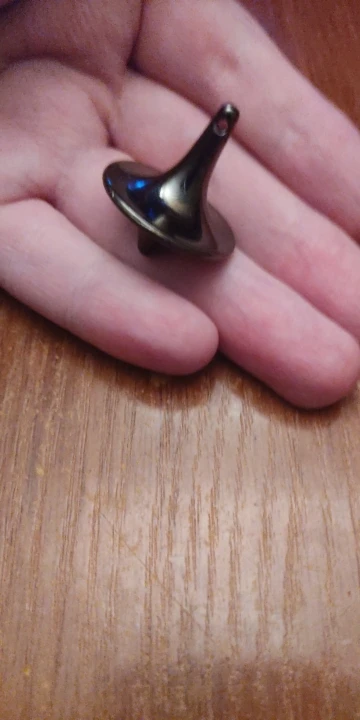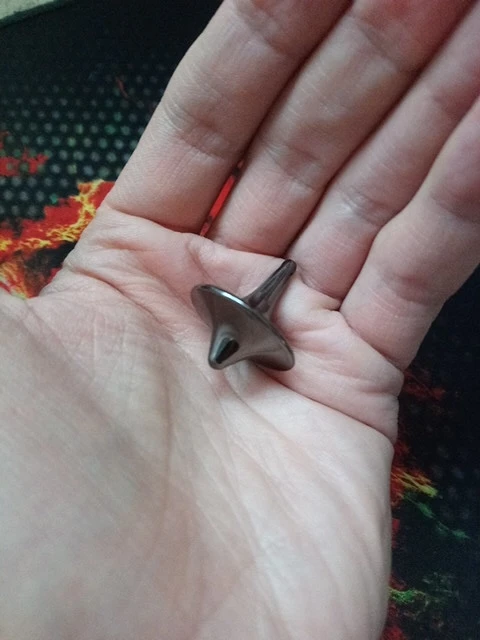 Нормальная реплика волчка из фильма "Inception". Фанат Нолан будет доволен. Волчок металлический, гладкий, приятно тяжёлый, на вершине зачем-то отверстие (видимо, для веревочки, чтобы использовать как брелок или носить на шее). Крутится достаточно долго, но зависит ещё от поверхности и от умения правильно закручивать.