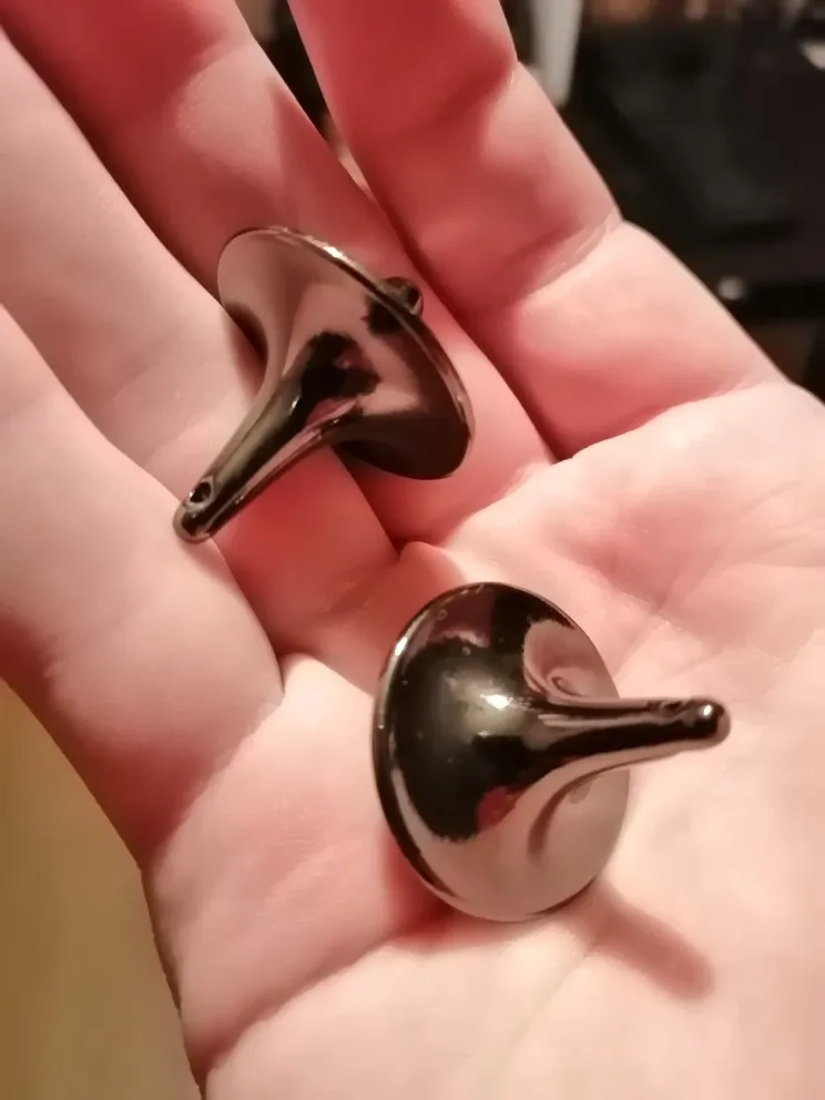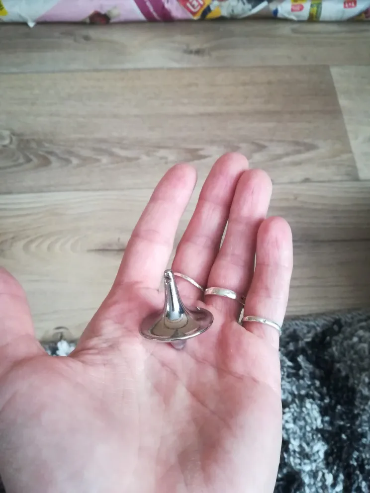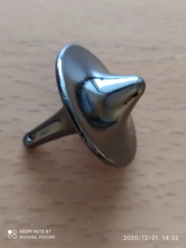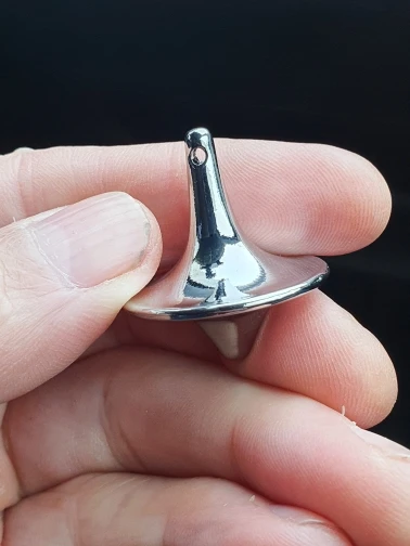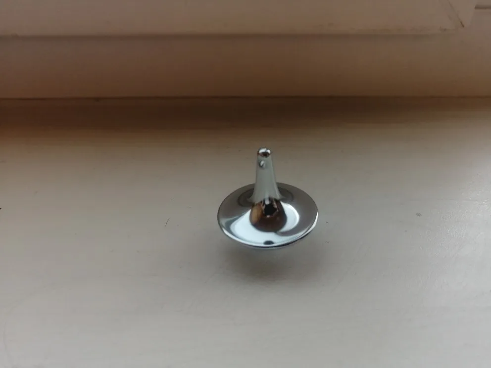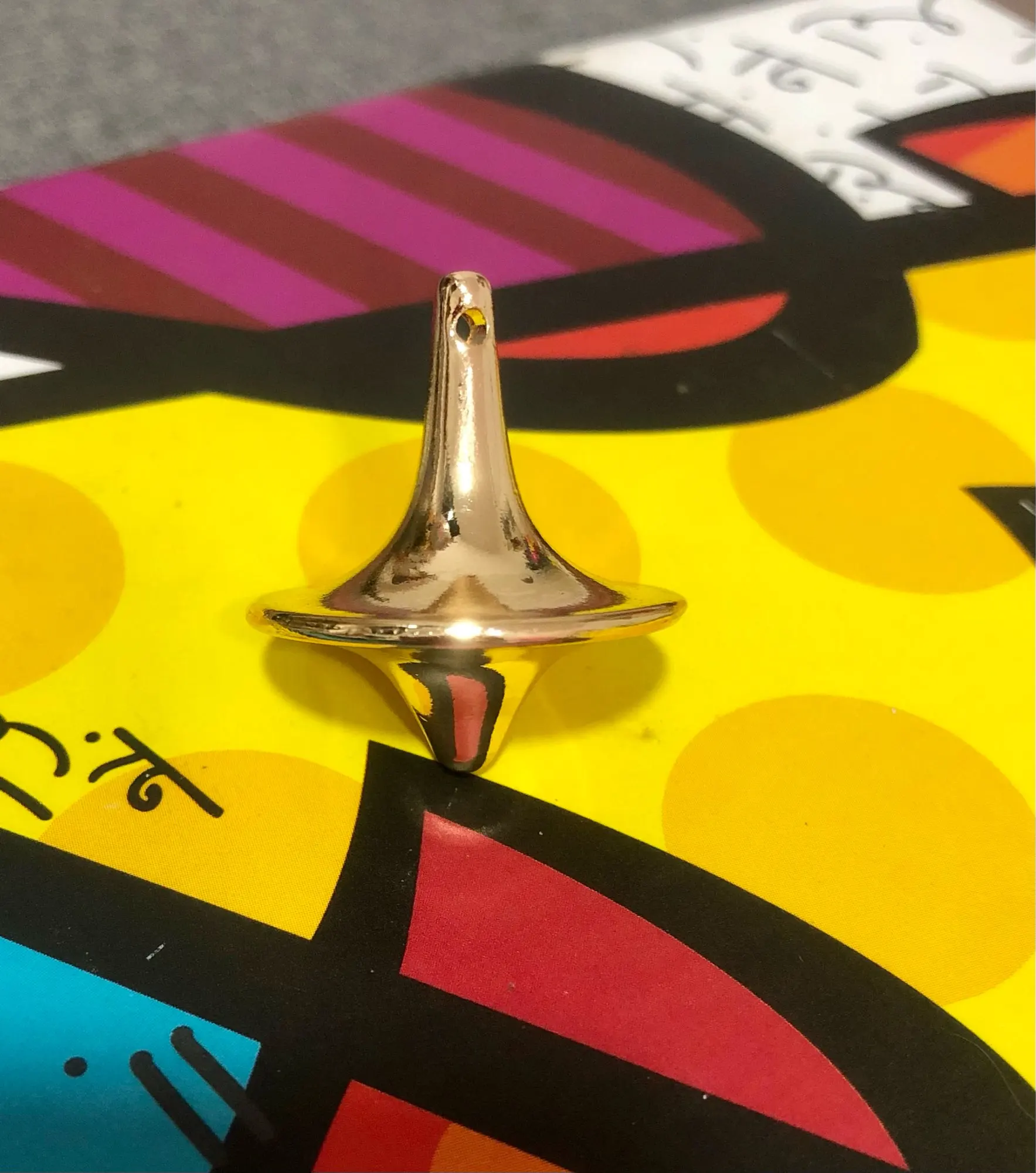 Нормальная реплика волчка из фильма "Inception". Фанат Нолан будет доволен. Волчок металлический, гладкий, приятно тяжёлый, на вершине зачем-то отверстие (видимо, для веревочки, чтобы использовать как брелок или носить на шее). Крутится достаточно долго, но зависит ещё от поверхности и от умения правильно закручивать.