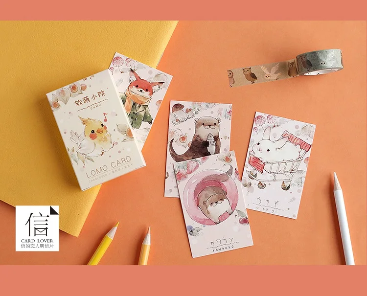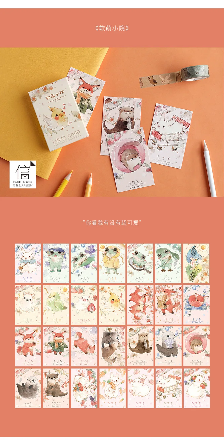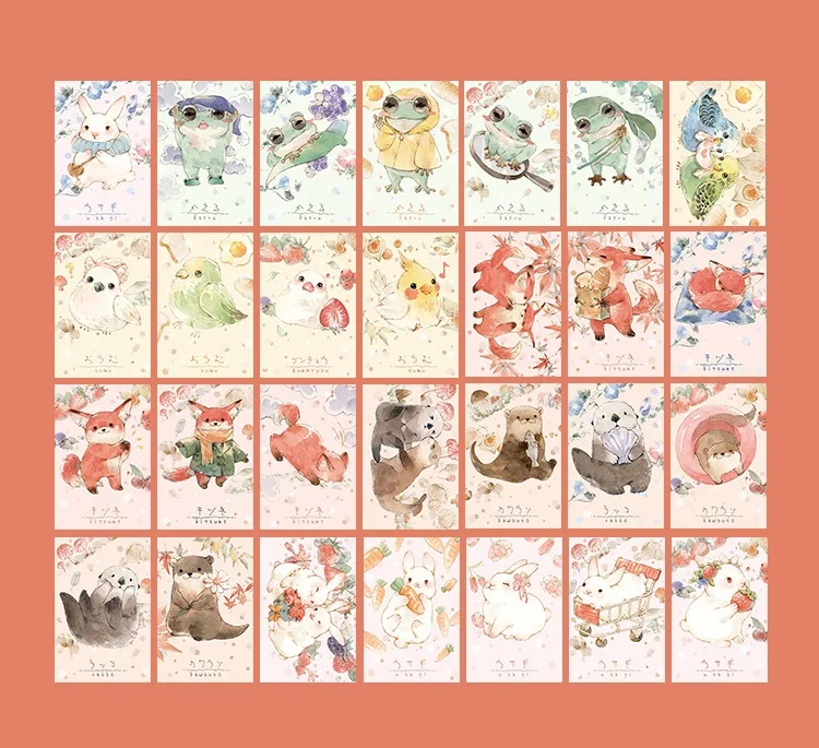 Мини-открытка с милыми птицами и кроликами, 28 листовнабор