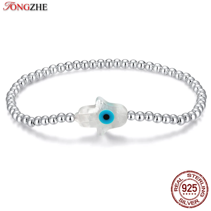 Женский браслет TONGZHE из стерлингового серебра 925 пробы, ювелирные изделия с фианитами, крест Хамса, сглаза, турецкие очаровательные браслеты на удачу для женщин, браслеты
