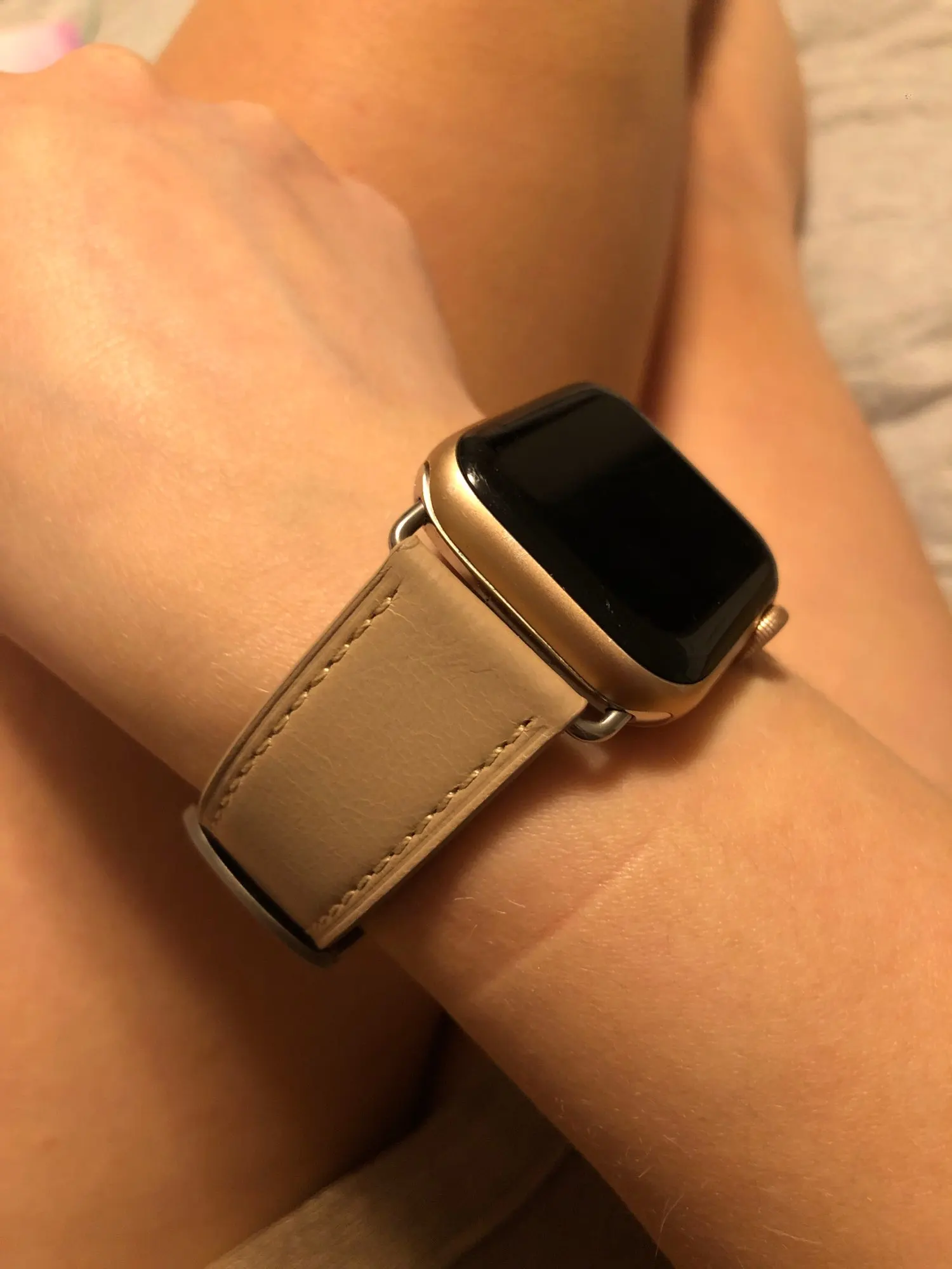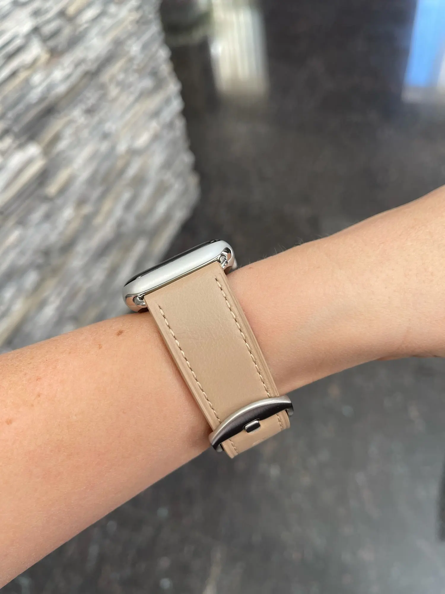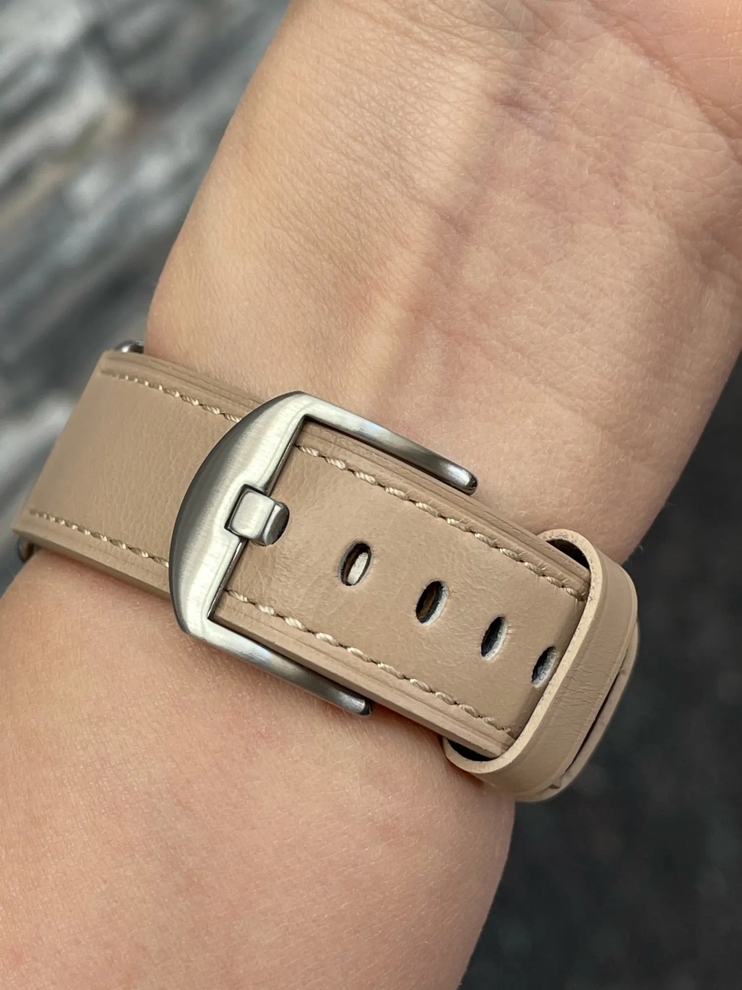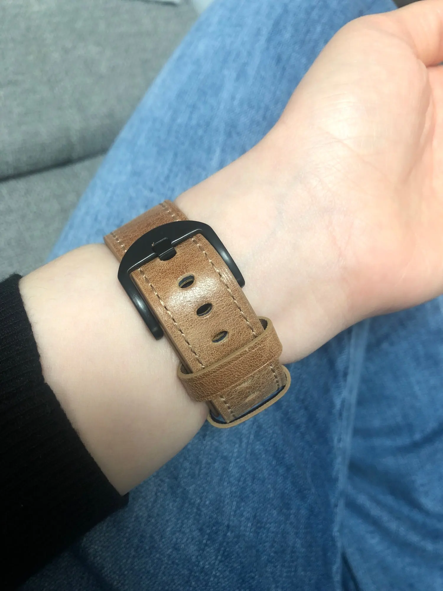 Красивый ремешок. Носила уже около недели, сейчас есть несколько складок, но я думаю, что это нормально. Я не уверен, является ли это натуральной кожей, так как я не совсем понимаю эти вещи, но кажется, что она прочная и хорошо сшита. Мне нравится цвет. Доставка была очень быстрой около недели/10 дней в Великобританию!