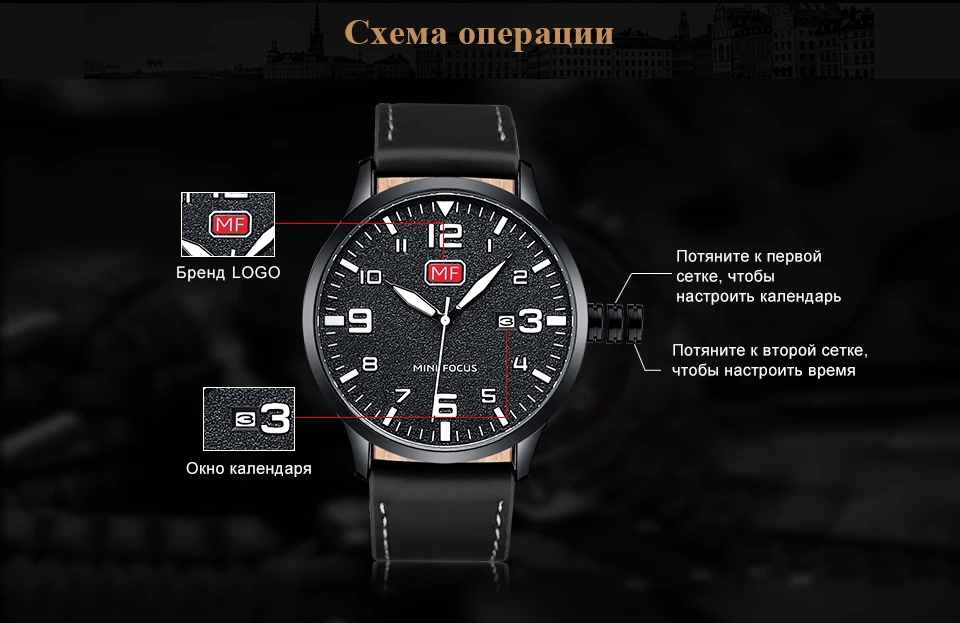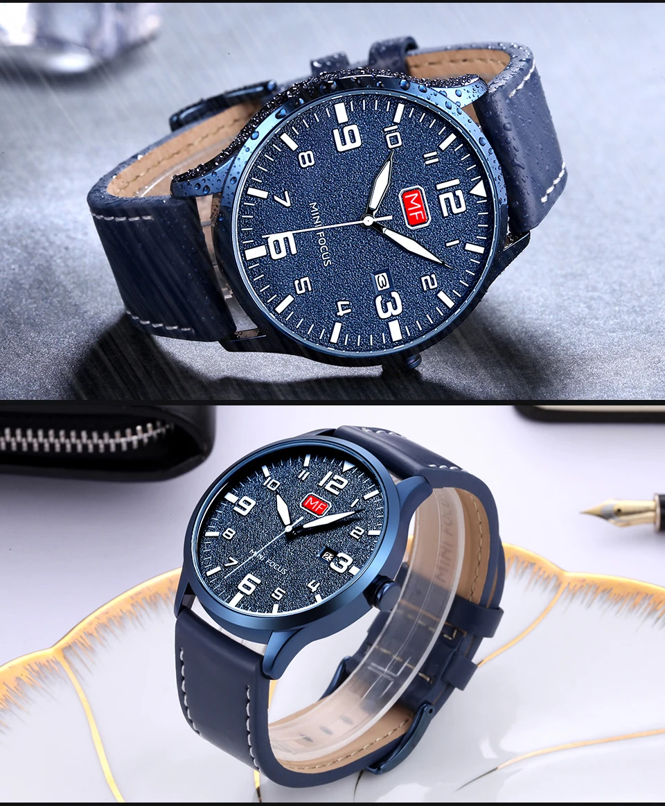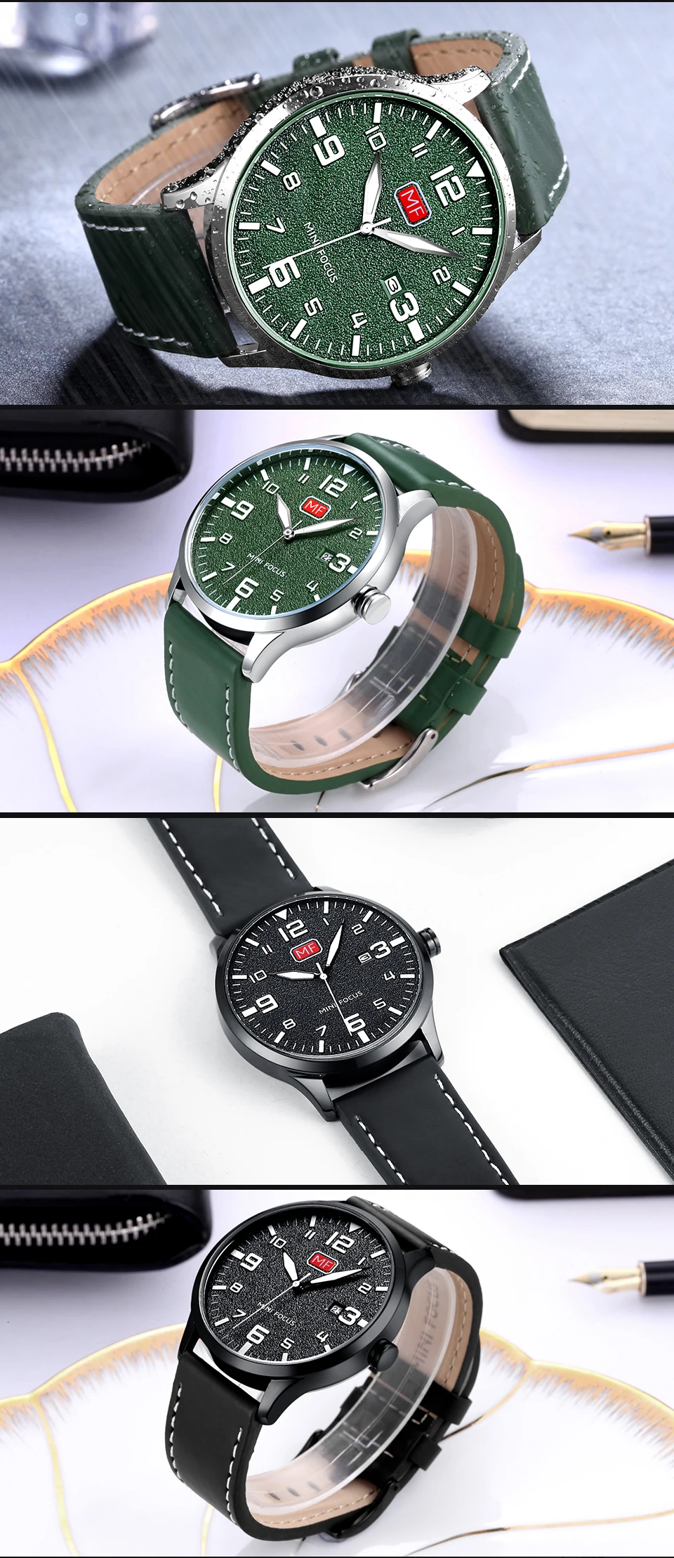 Minifocus Элитный бренд Для мужчин наручные кварцевые наручные часы Для мужчин Водонепроницаемый коричневый кожаный ремешок Мода часы Relgio Masculino