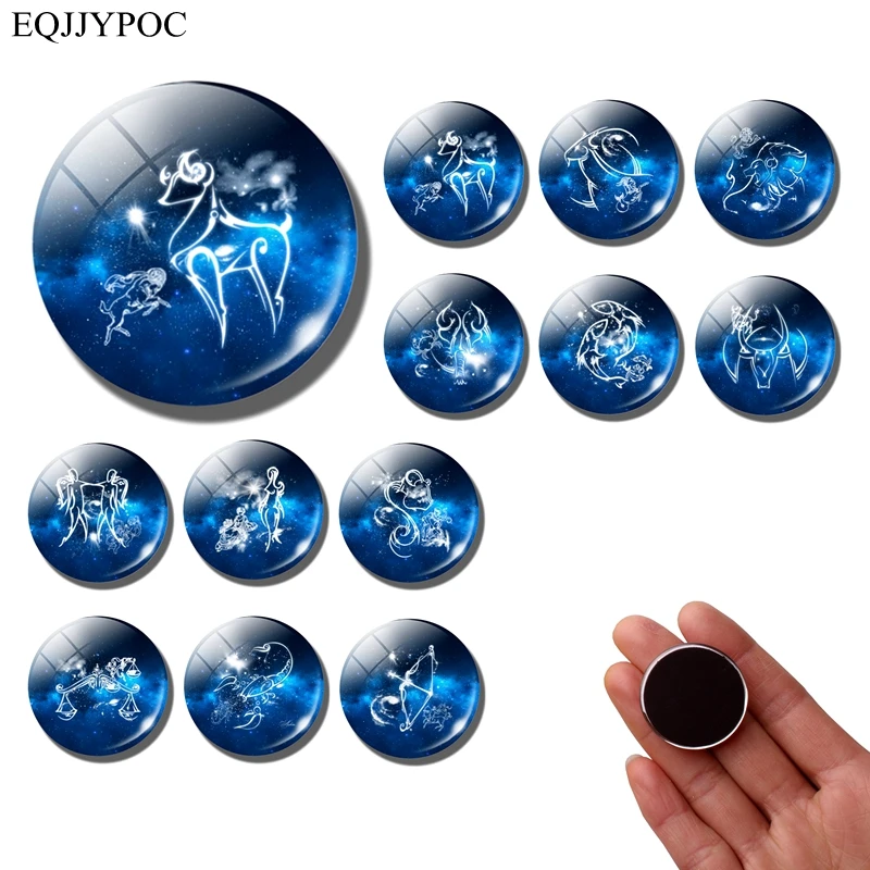 Стеклянный выпуклый Круглый магнит на холодильник с 12 созвездиями,...