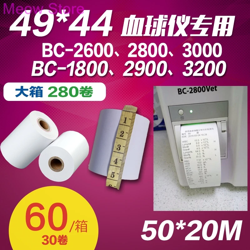 Для Mindray 50mmX20 кровяные клетки термальная 49*44 кровяные клетки термальная печатная бумага BC3000 BC1800 BC2600vet BC2900 BC20sBC31S BC30S