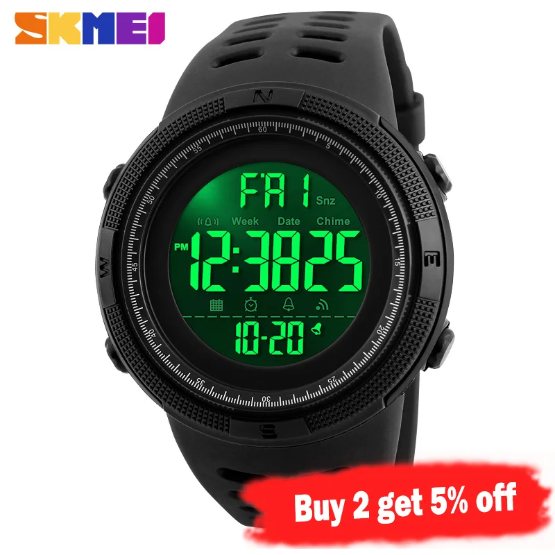 SKMEI 1251 мужские спортивные часы, двойной раз, мужские многофункциональные часы, будильник, 5Bar водонепроницаемые цифровые часы reloj hombre