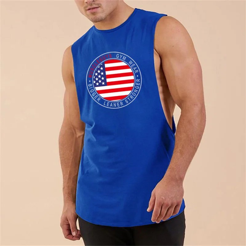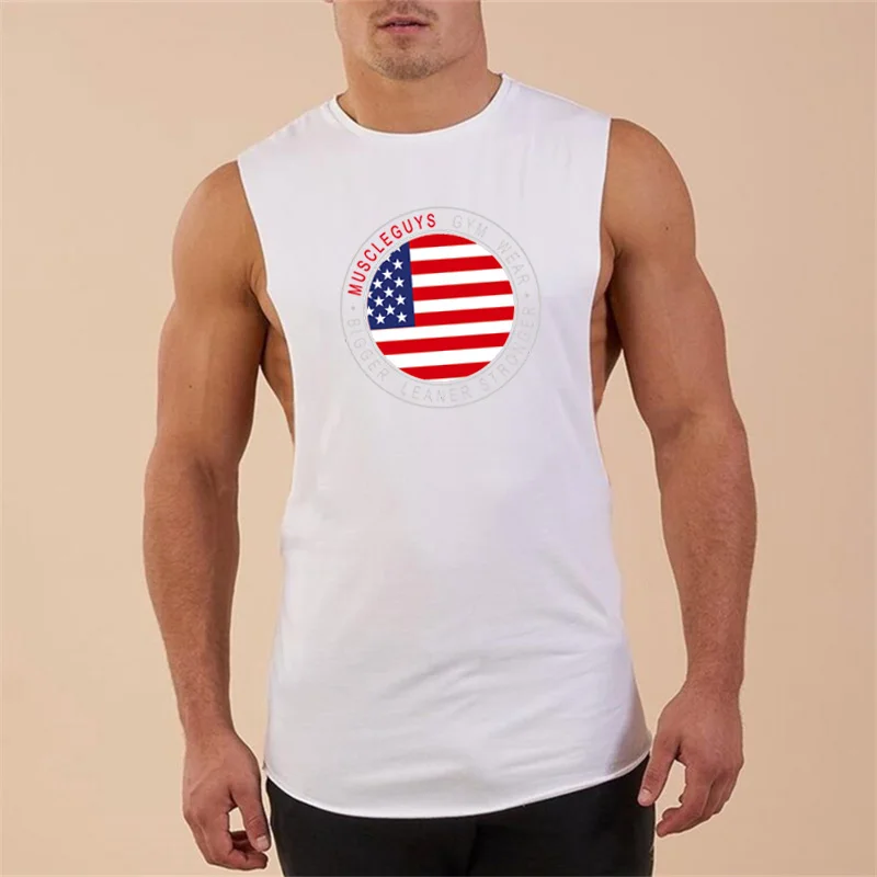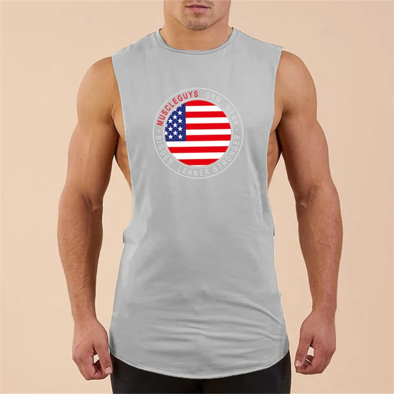Майка Muscleguys мужская с вырезами без рукавов, одежда для бодибилдинга и фитнеса, майка с флагом США, жилет для мышц