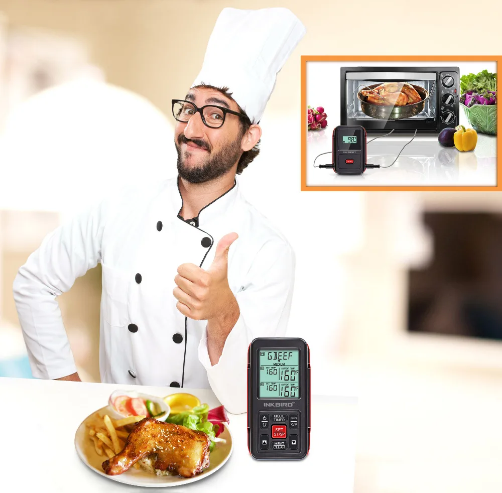 Inkbird IRF-2S электронный кулинарный беспроводной термометр для пищевых продуктов, ЖК-экран, три зонда из нержавеющей стали (два мясных зонда и один зонд для печи)