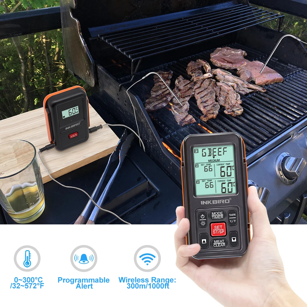 Описание товараIRF-2S Inkbird-это цифровой дистанционный беспроводной термометр с таймером, который является программируемым радиочастотным термометром. С диапазоном до 500 футов/150 м, это может позволить вам контролировать ваше мясо и температуру курильщика из любой точки вашего дома. И вы можете развлекать друзей, готовить другую еду или спать. Посылка включает в себя 3 температурных зонда и один зажим. Зажим может держать Один курильщик/зонд печи и два других зонда для мяса. (Но, Пожалуйста, знайте, что на устройстве есть только два гнезда зонда). ЖК-экран с подсветкой поддерживает приготовление пищи в помещении или на открытом воздухе даже ночью. IRF-2S Inkbird не только поможет вам вкусно готовить, но и позволит вам чувствовать себя комфортно и экономить время.