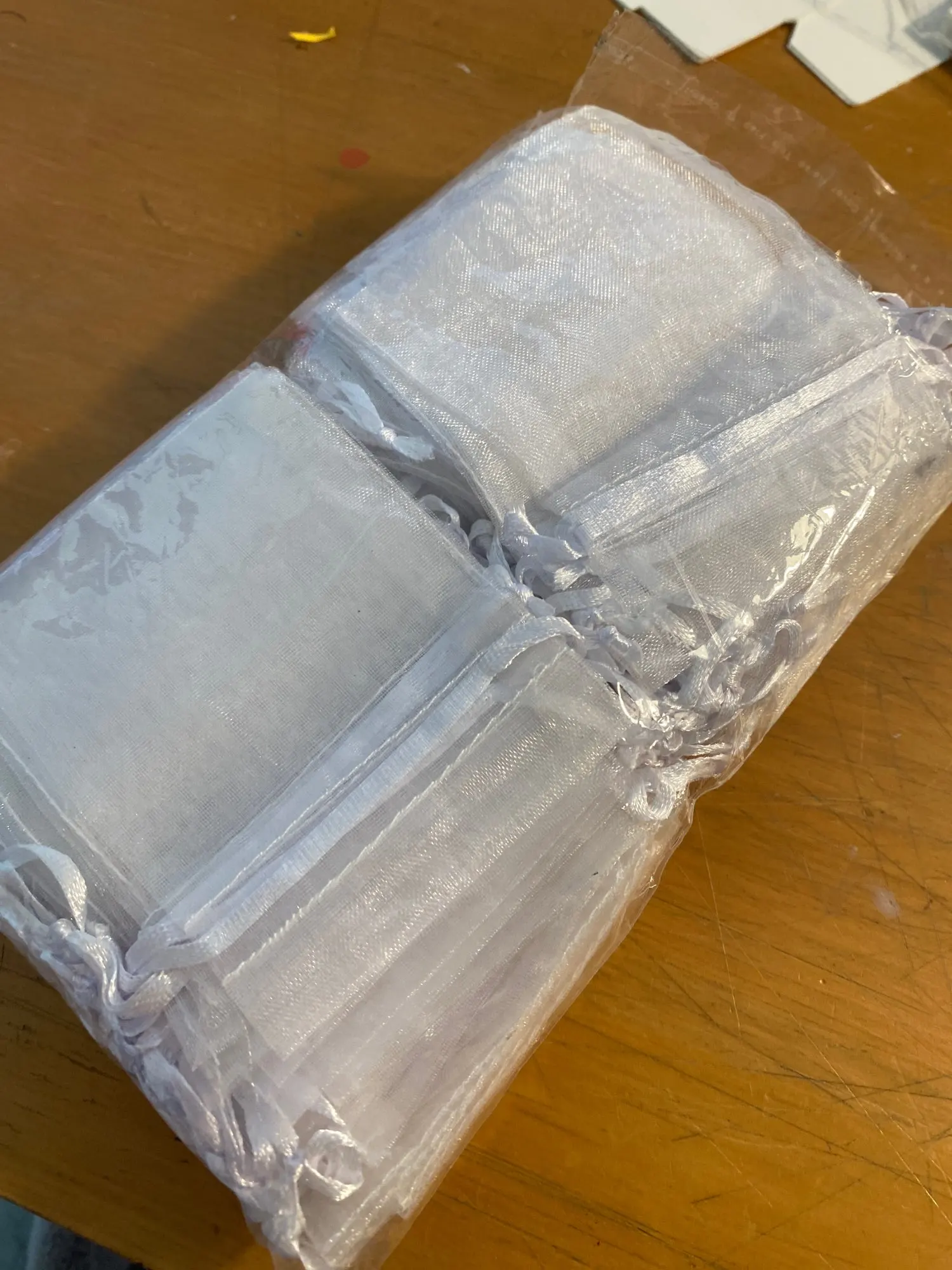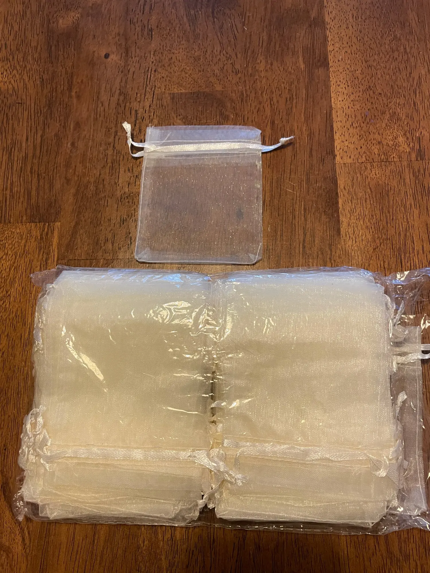 Я только что получил их. Я очень доволен своей покупкой, карманы organza snt удобны Мои ожидания, цена интересная, и доставка была очень быстрой. Я возьму их обратно в эту коробку.