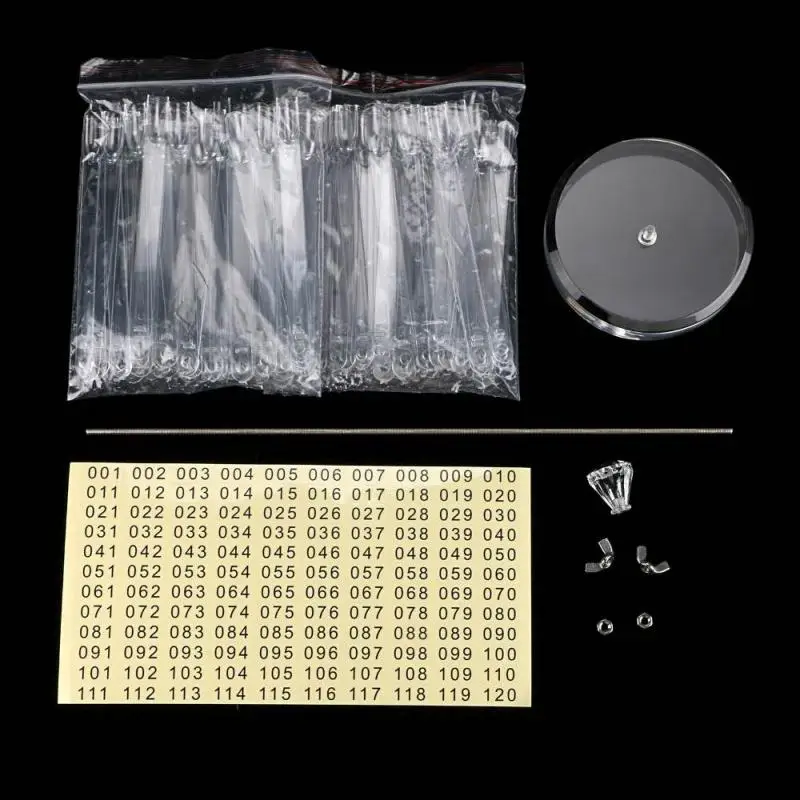 Описание товара: Тип: 120 шт. Состояние: новоеМатериал: пластикЦвет: прозрачный, белыйВысота: приложение 31,5 смДиаметр: приложение 25 смВес: прозрачный: 442 гПрирода белый: 400 гИспользование: подходит для ногтевого искусства, салонного шоу цвет карты и т. Д. Тип: 64 шт. 100% новый и высокое качествоИзготовлен из жесткого пластикаС 64 поп-палкамиЕсть также 64 отверстия в подставке, так что вы можете поместить все дисплееры, как показано вышеПодходит для профессионалов или для домашнего использованияДлина каждого дисплеера составляет около 10 смРазмеры лаков для ногтей составляет около 3 см x 1,3 смРазмеры подставки составляет около 24 см (L) x 7,5 см (Ш) х 5 см (H).