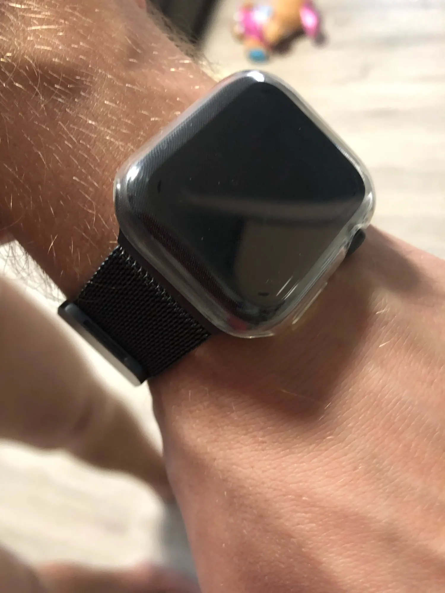виглядає масивніше трошки ніж «голий», при використанні під кейс потрапляє волога і повітря, і потрібен деякий час для того щоб зображення було добре видно. Але це зовсім не критично, для щоденного використання підходить) для гарної картинки можна знімати! Шкодую, що не замовила раніше, бо лишила подряпини вже через два тижні використання годинника.