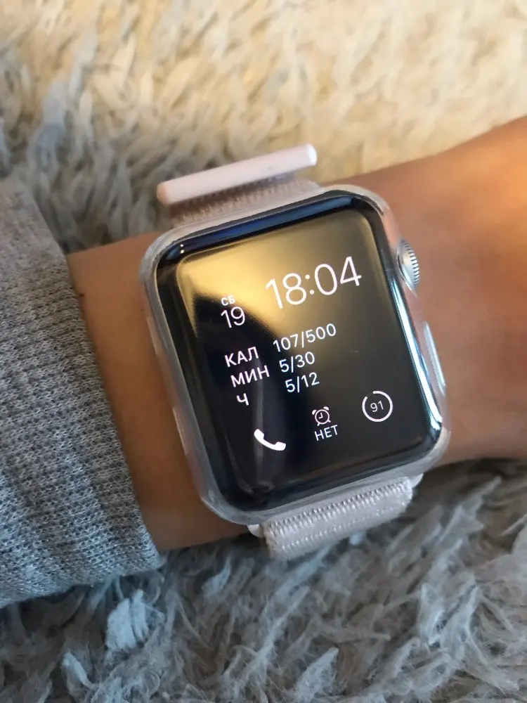 На Apple Watch 3 series 38mm сел идеально, на фото видно. Чувствительность сенсора не снизилась. Пришло в пупырке, в комплекте 2 салфетки. Очень долгая доставка до Красноярска (заказала 23 июля, пришло 12 сентября), которая не отслеживалась.