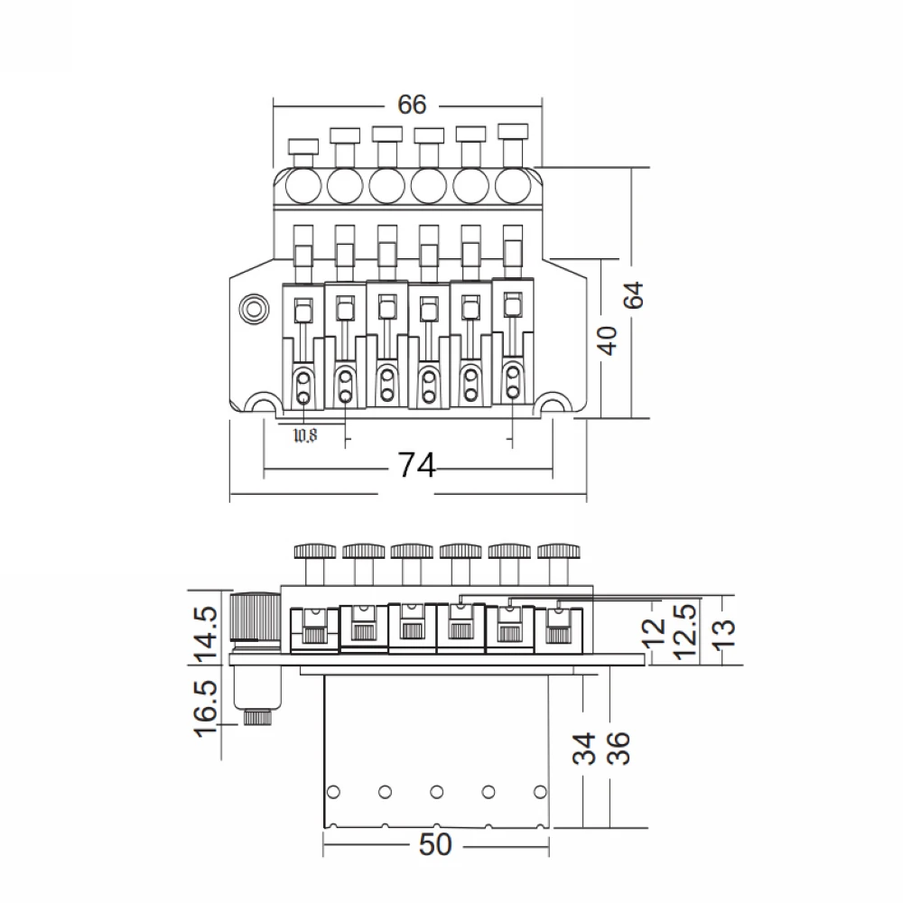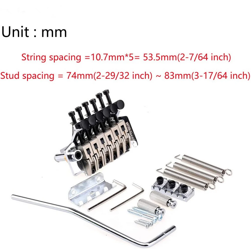 С помощью воротника Wilkinson arm. Гладкий толчок в руках vibrato с регулировкой натяжения.. Базовая пластина и седла изготовлены из стали, блок изготовлен из литого под давлением цинка. Расстояние между строками от E до E: 54 мм. Расстояние между связывающими столбами: 74 мм. Хромированная Базовая пластина и никелевые седла