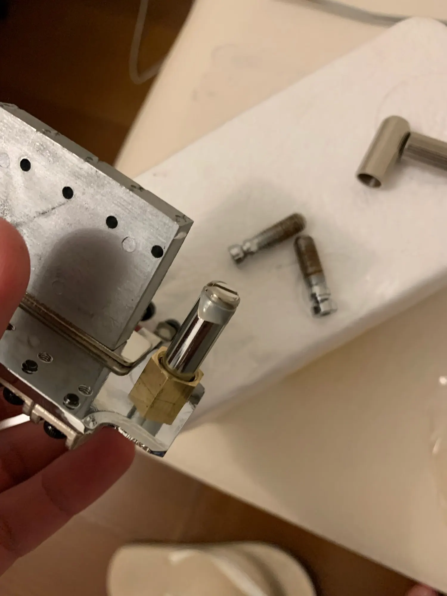 Он имеет воротник вокруг руки, которые могут быть зажаты двумя поворотными гайками через шестигранный винт, который выступает камерой заднего вида