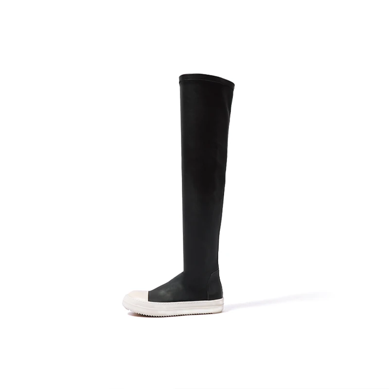 Koovanженские ботфорты выше колена пикантные сапоги из натуральной кожи в стиле суперзвезды; Новинка 2020 года; сезон осень-зима облегающие эластичные кожаные сапоги