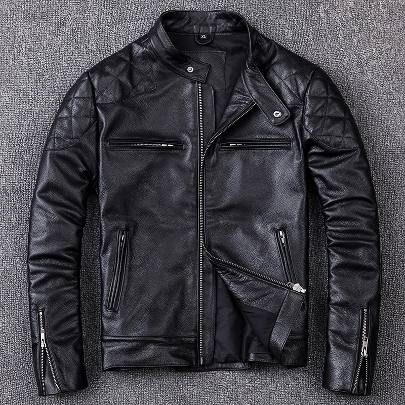 Мужская мотоциклетная куртка из натуральной кожи Дэвида Бекхэма, черная короткая приталенная куртка из воловьей кожи на осень
