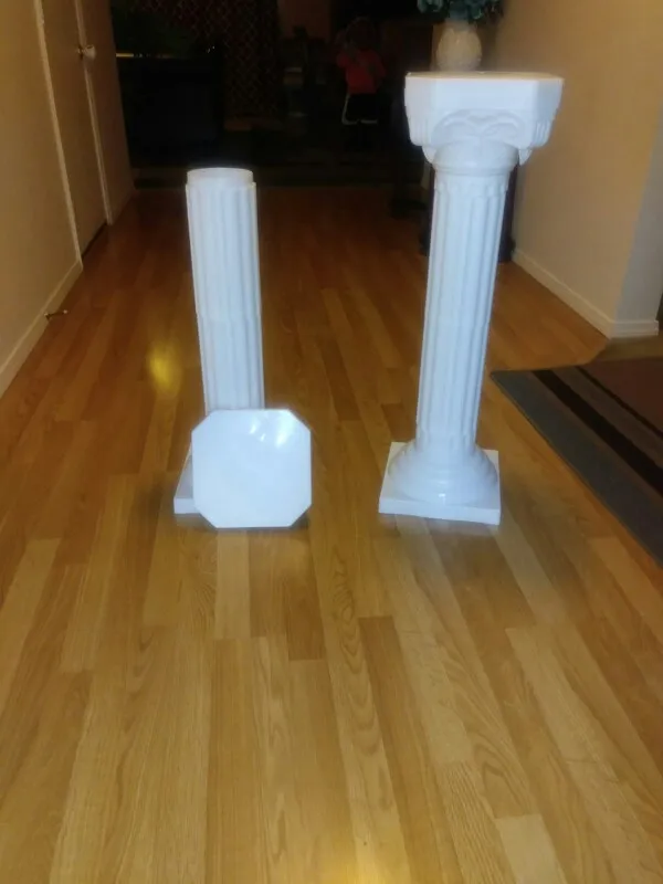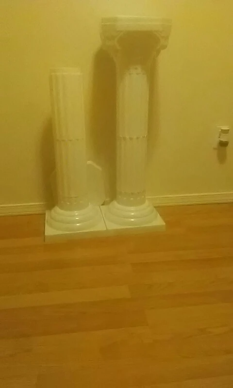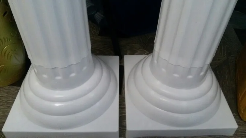доставка месяц до Хакасии,службой DPD принесла приветливая девушка-курьер,упаковано в высокую коробку.Товар в разобранном виде,все детали на месте,пластик довольно плотный(представляла совсем тоненький..) поэтому приятно удивлена.Собрать легко,на одной колонне в одной из частей пазы не совпадают(на одном из фото видно)и все места сборки не плавно переходят а их прям видно но я это видела на фото продавца,поэтому пока не знаю как решить эти недостатоки,поскольку белый цвет мне не нужен буду думать как задекорировать эти колонны,брала для домашнего интерьера.Продавцу спасибо.