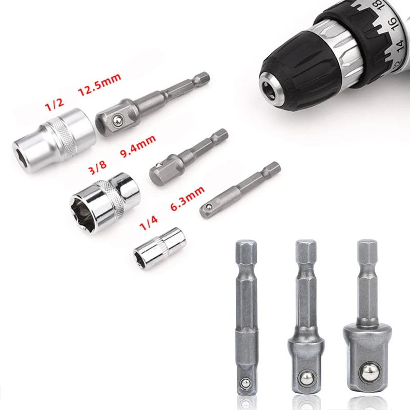 3 шт.компл. переходник из хромованадиевой стали с шестигранным хвостовиком на 14, 38, 12 дюйма, удлинительные сверла, Набор шестигранных бит для электроинструментов
