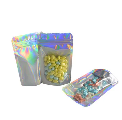 100 шт. голограмма Глянцевая серебряная алюминиевая фольга пакет с замком на молнии термозапечатывающаяся закуска для кофе-брейка Косметика подарки мешочки для теней для век